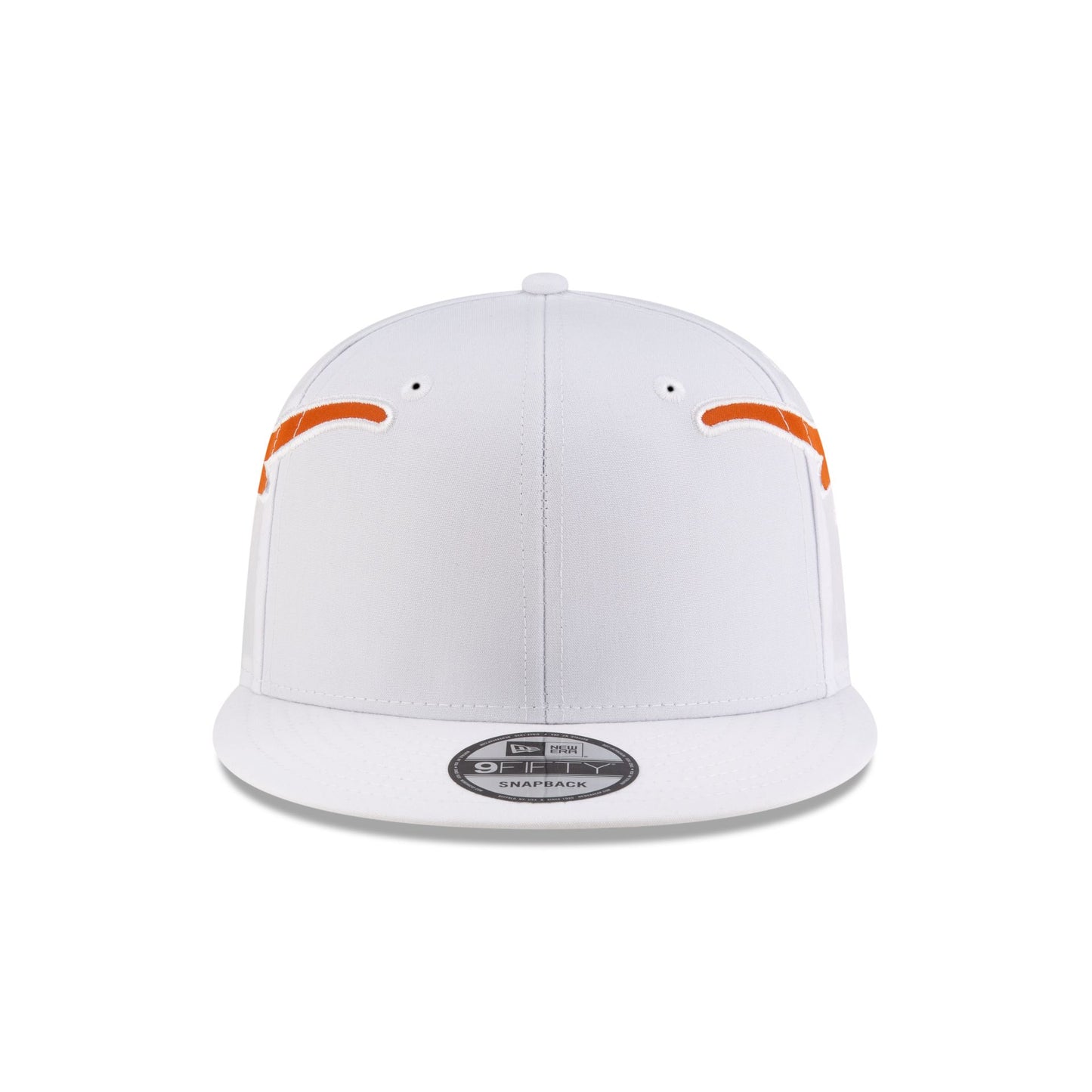 The Texas Longhorns Helmet 9FIFTY Snapback features an embroidered Longhorns logo at the left and right-wear side and a helmet stripe down the middle of the crown. Additional details include a team tag on a snapback closure at the rear.