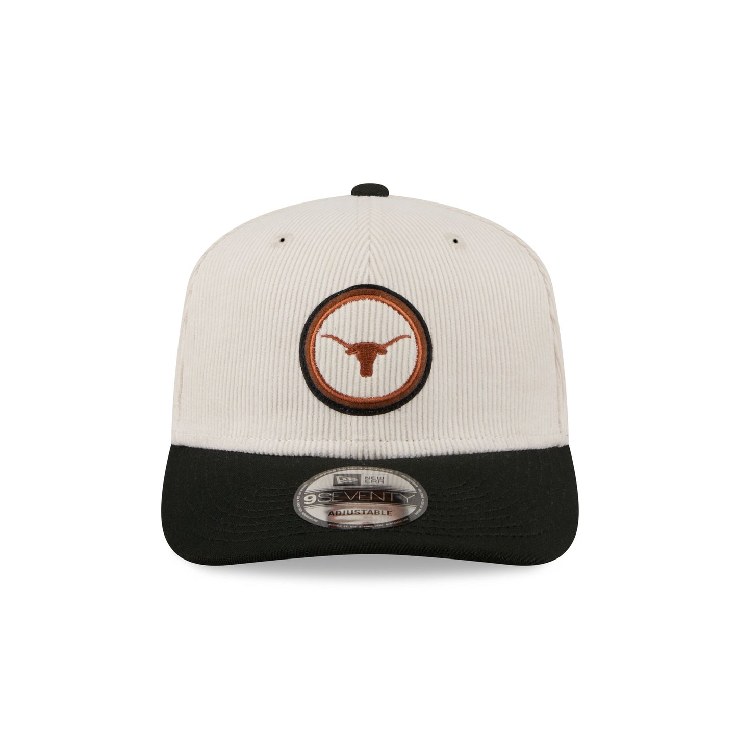 The Texas Longhorns Loyal Corduroy 9SEVENTY Stretch-Snap features an embroidered Longhorns logo at the front panels against a corduroy fabrication throughout the cap. Additional details include an alternate logo at the right-wear side with an adjustable stretch-snap closure at the rear.