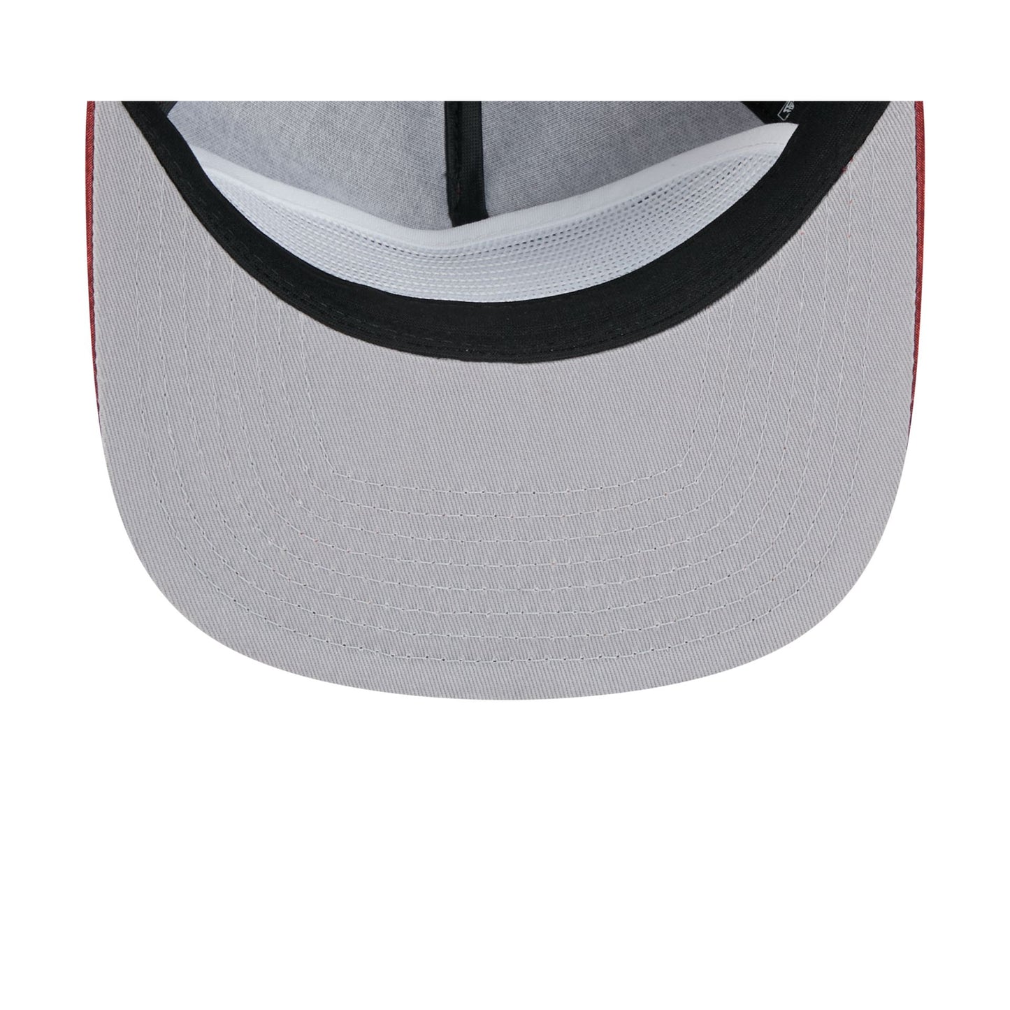 The Texas Longhorns College Vault Team Rope Golfer features an embroidered Longhorns College Vault logo at the front panels against a nylon fabrication throughout. Additional details include a white rope at the visor, a gray undervisor, and a snapback closure at the rear.