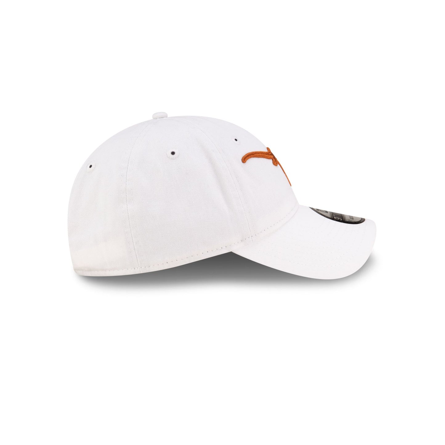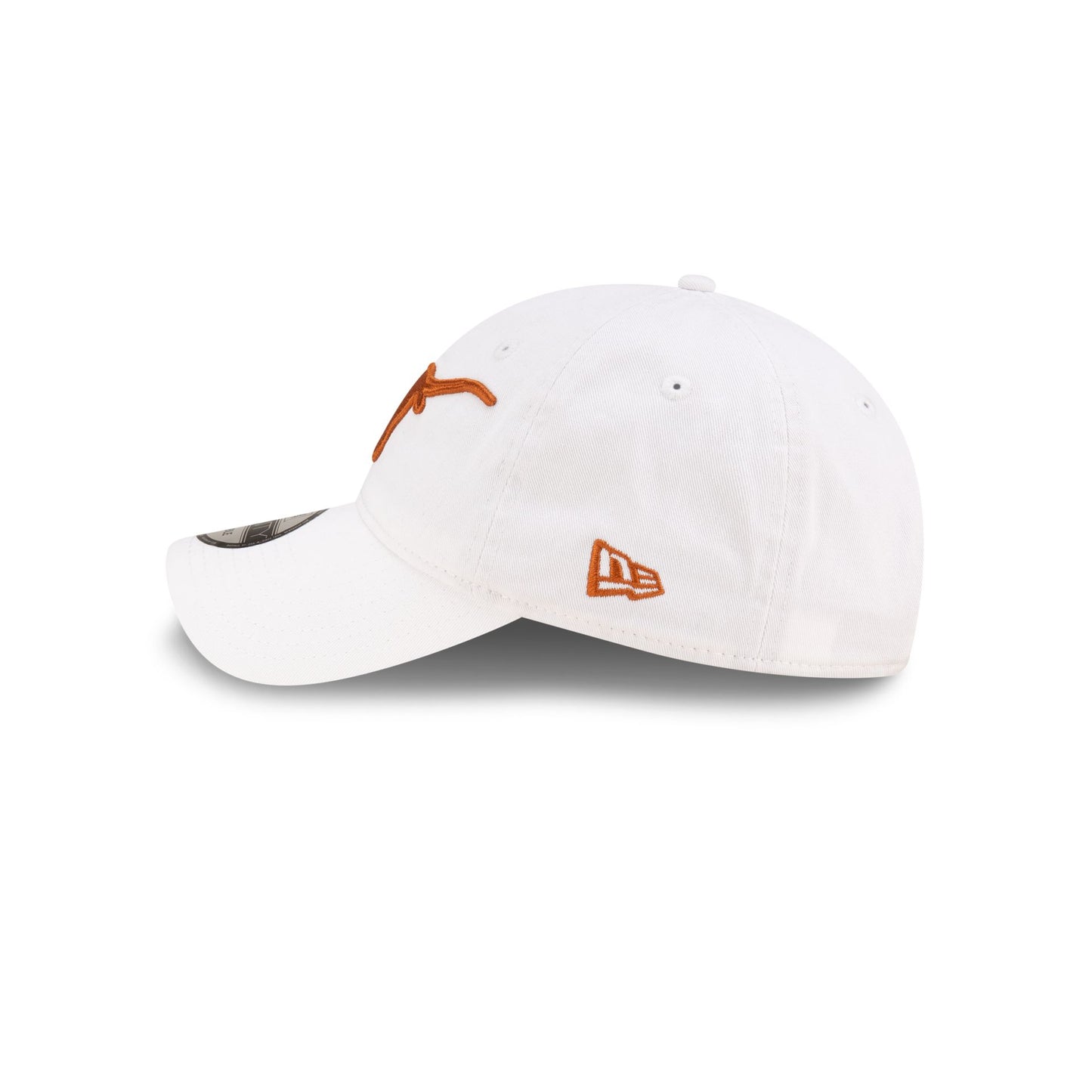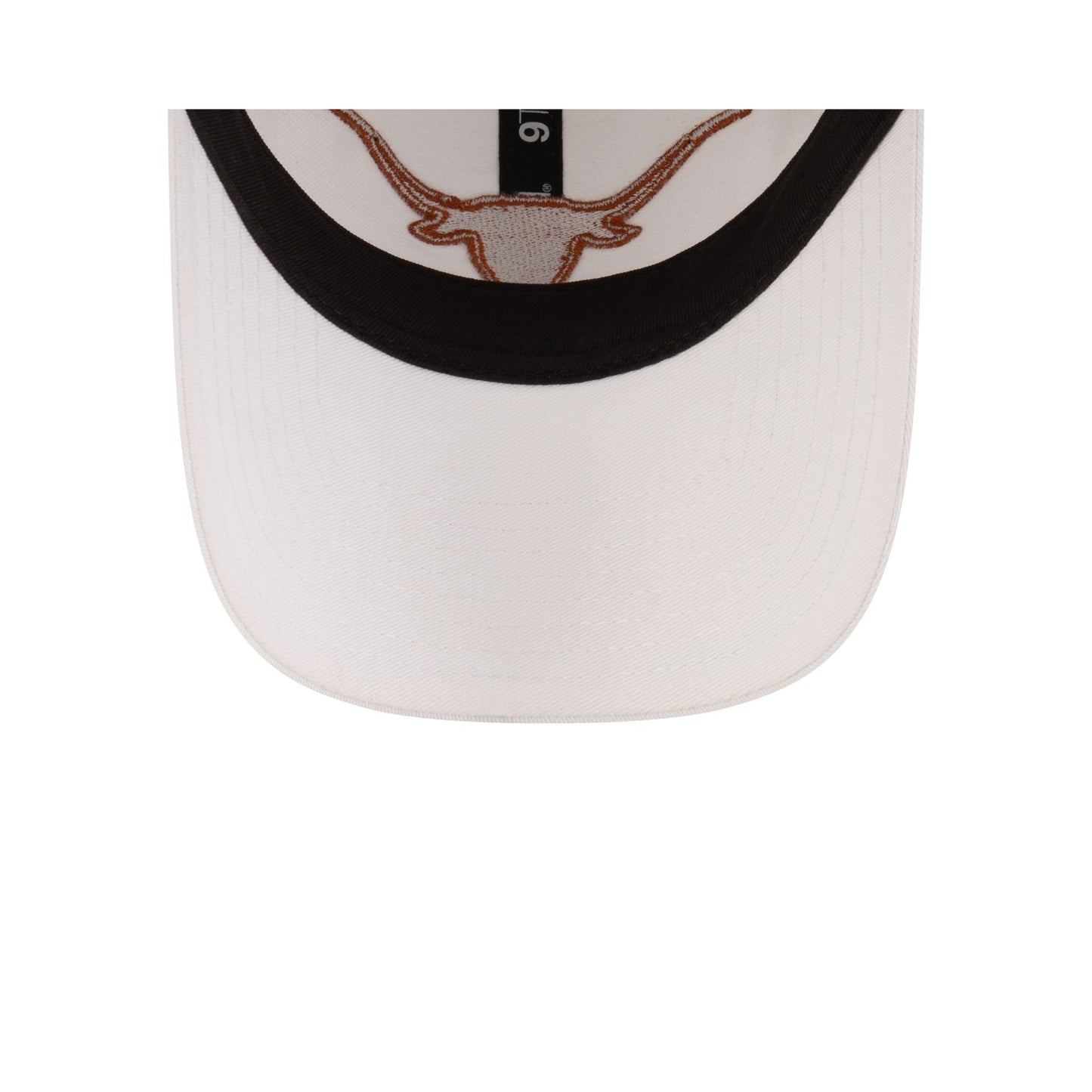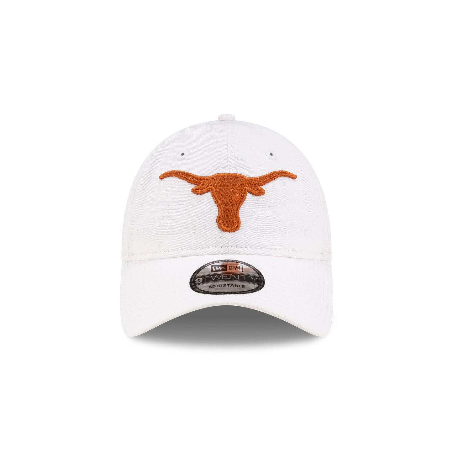 The Texas Longhorns White 9TWENTY Adjustable Cap features an embroidered Longhorns logo at the front panels with an alternate team logo above an adjustable D-Ring closure at the rear.