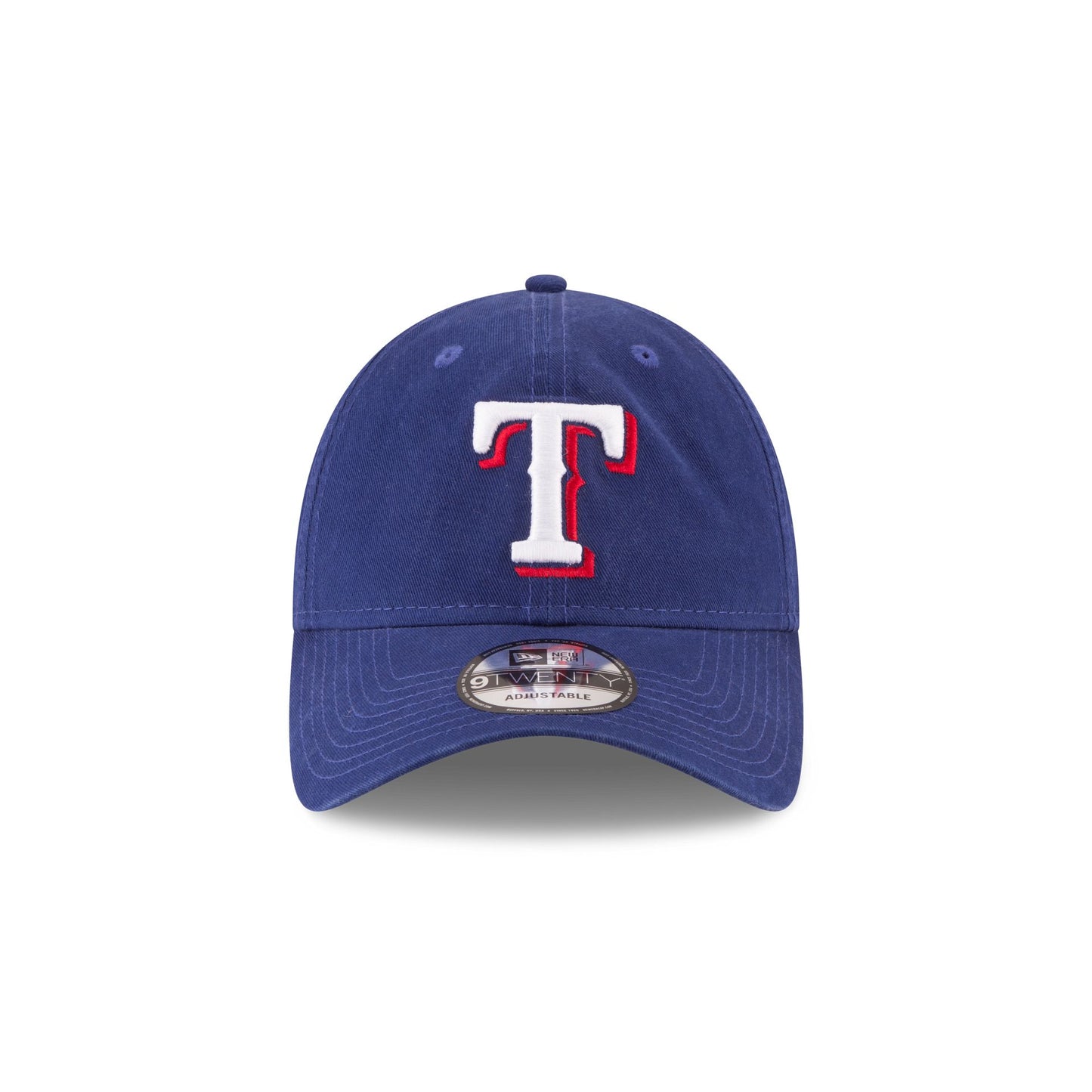 The Texas Rangers 2024 All-Star Game Host 9TWENTY Adjustable Cap features an embroidered Rangers logo at the front panels with the official 2024 MLB All-Star Game Host patch at the right-wear side and a woven team logo tag on an adjustable D-Ring closure at the rear.