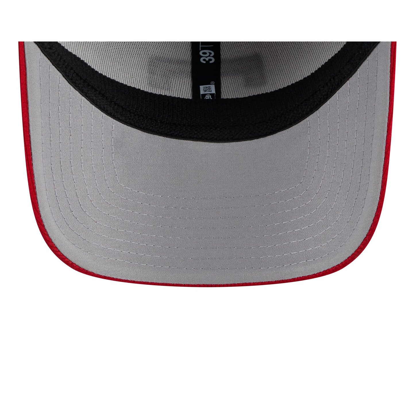 The Texas Rangers 2025 Batting Practice 39THIRTY Stretch Fit Cap features an embroidered Rangers logo at the front panels with a matching team wordmark at the rear. Additional details include a pivot knit fabrication, a red visor, and a gray undervisor.