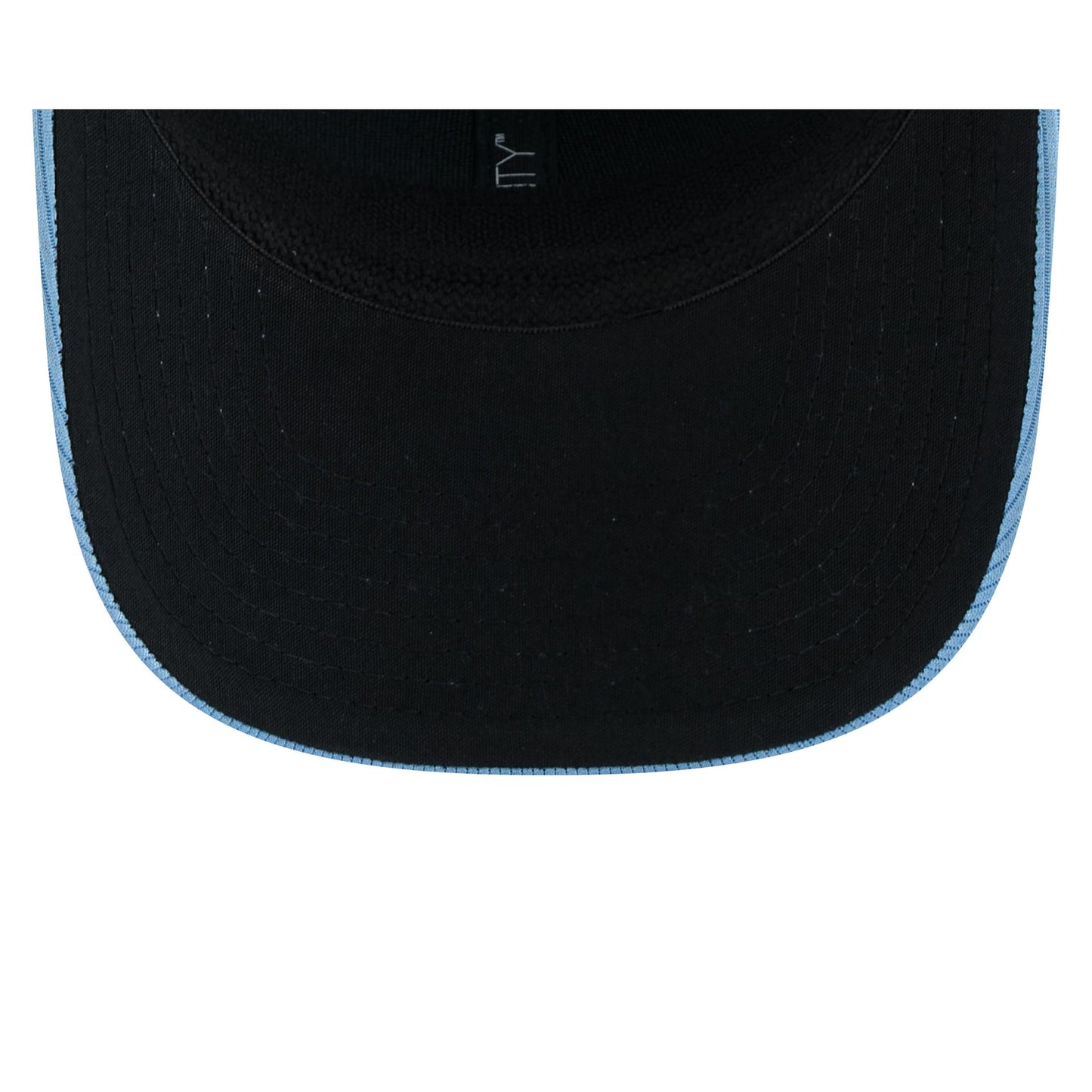 The Texas Rangers 2025 Spring Training 9SEVENTY Trucker Cap features an embroidered Rangers logo at the front panels with a snapback closure at the rear. Additional details include a pivot knit fabrication with a 2025 Spring Training patch at the right-wear side and a black undervisor.