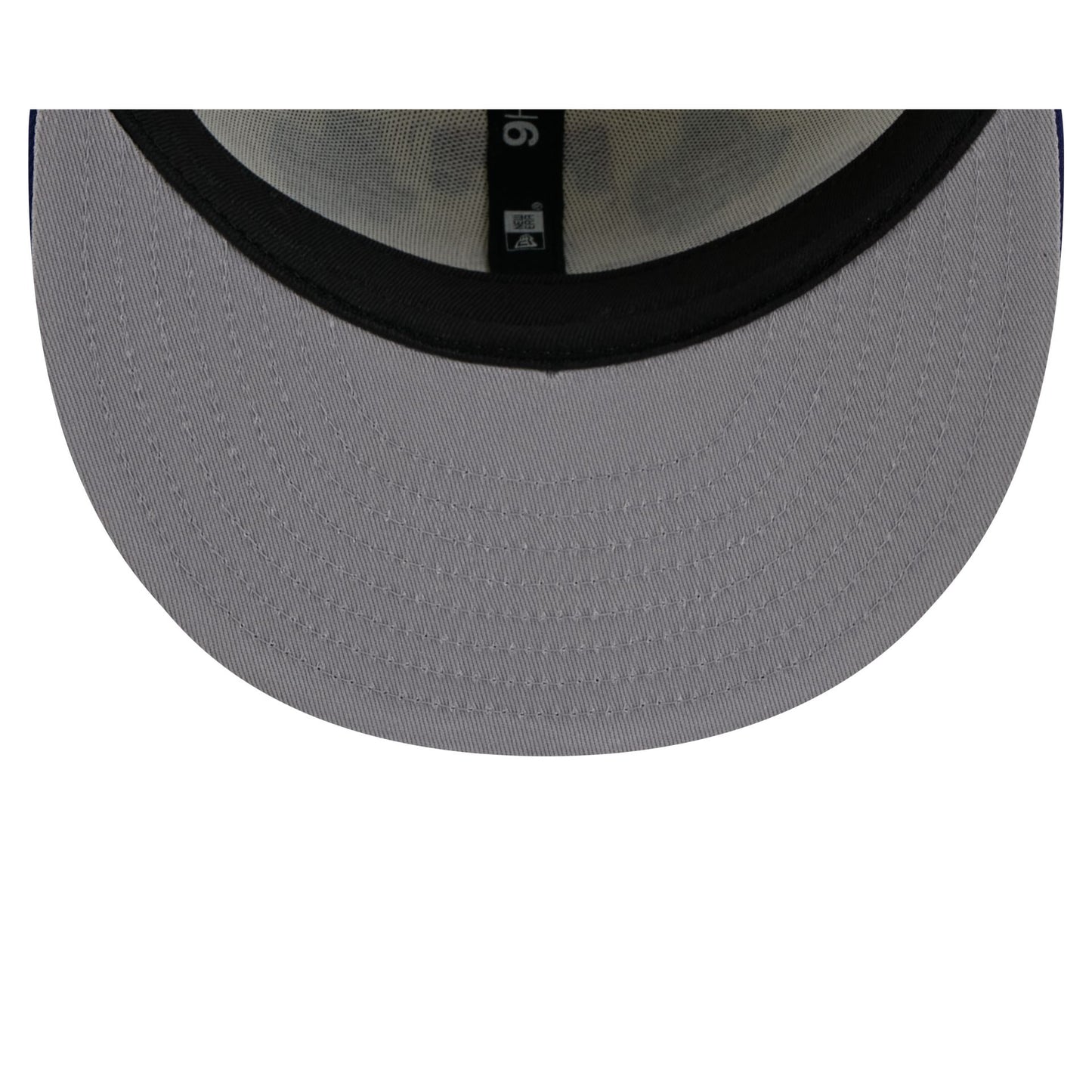 The Texas Rangers Archive 9FIFTY Snapback features an embroidered Rangers wordmark and various team logos at the front panels with a snapback closure at the rear and a gray undervisor.