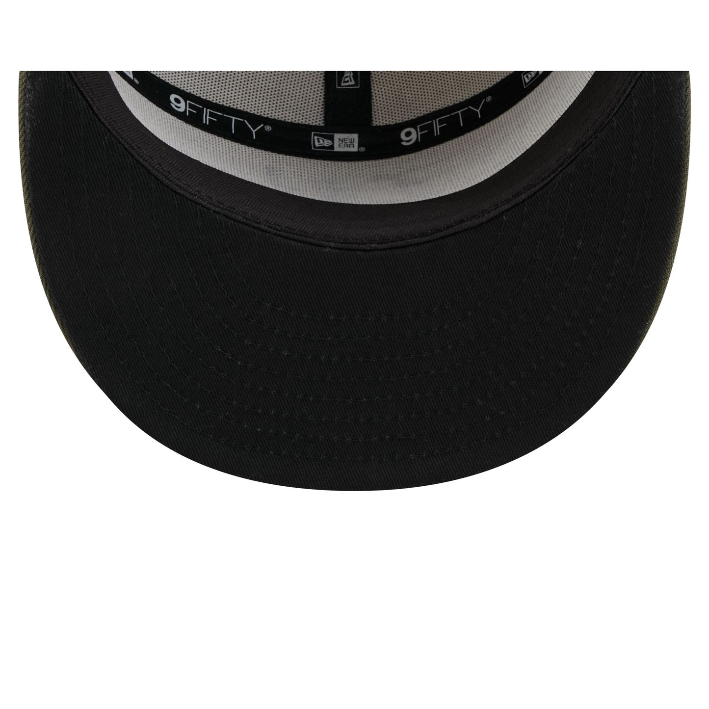 The Texas Rangers Armed Forces Day 2025 9FIFTY Split Panel Snapback features an embroidered Rangers logo at the front panels against a split crown construction with the American Flag embroidered at the right-wear side. Additional details include an MLB Batterman logo above a snapback closure at the rear and a black undervisor.