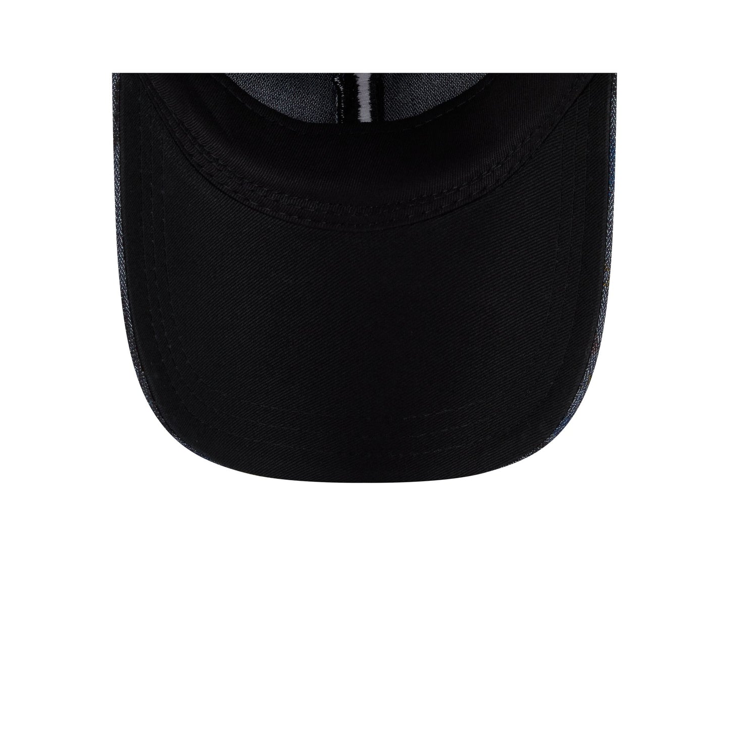 The Texas Rangers Aztec Pattern 9TWENTY Adjustable Cap features an embroidered Rangers logo at the front panels against a specialty Japanese milled printed cotton Aztec fabric from Three Looms Japan Fabrics throughout the cap. Additional details include an adjustable D-Ring closure at the rear and a black undervisor.