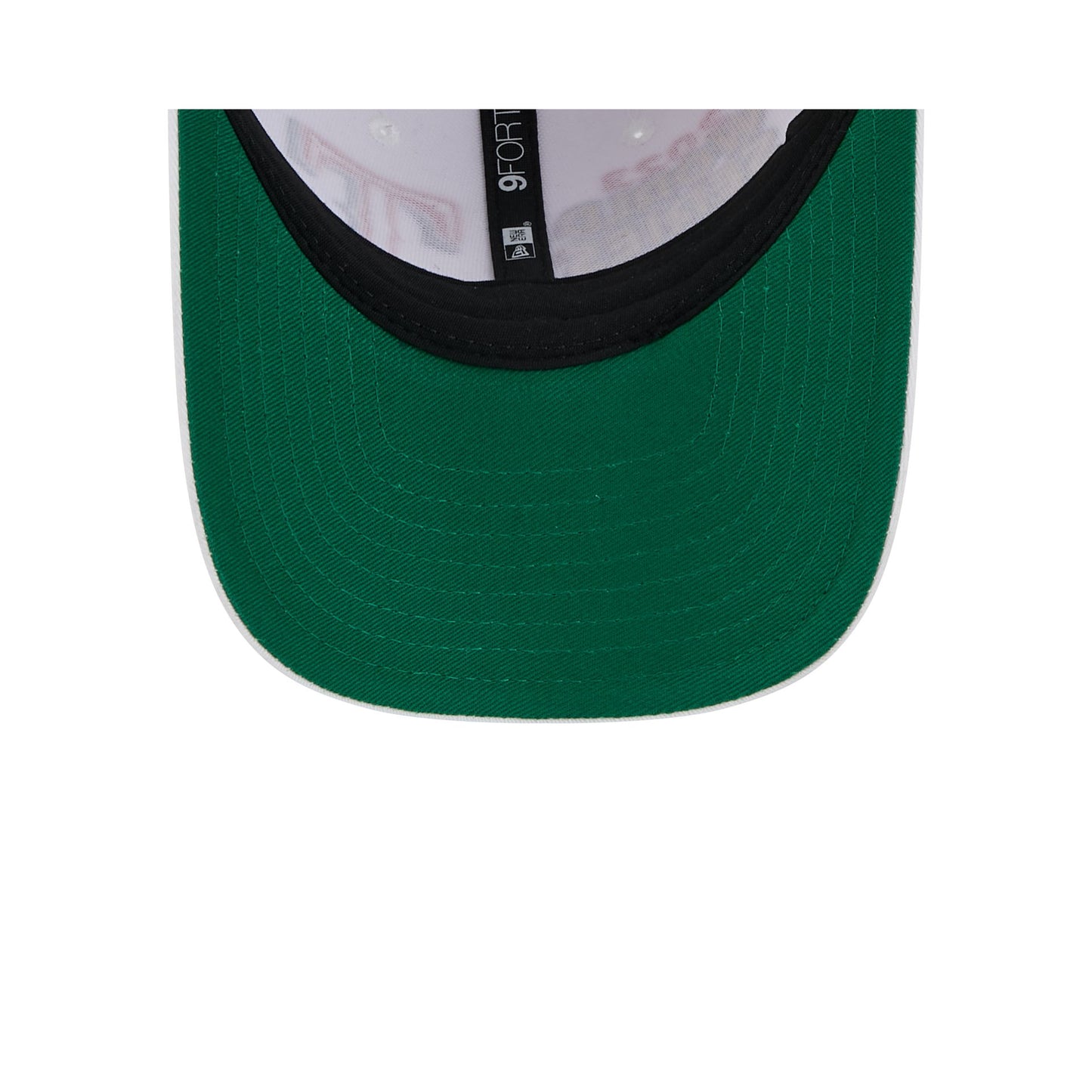 The Texas Rangers Championship Pack 9FORTY M-Crown Snapback features an embroidered Rangers logo and 2023 World Series wordmark at the front panels with a matching patch at the right-wear side. Additional details include a team color themed MLB Batterman logo above a snapback closure at the rear and a green undervisor.