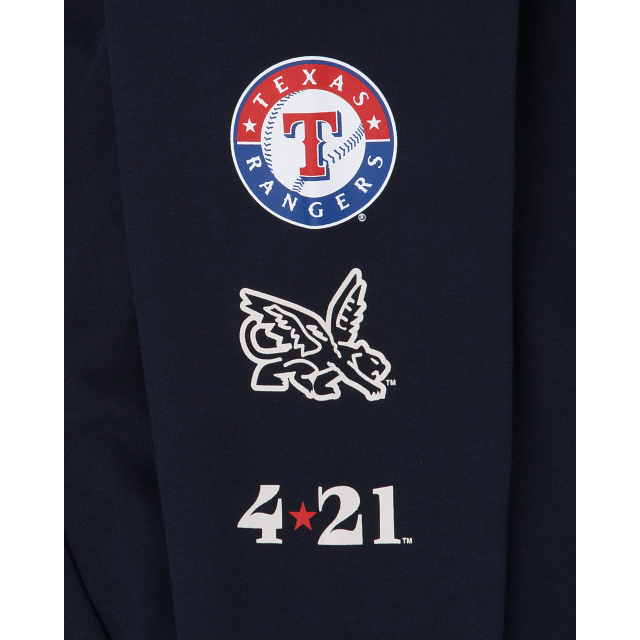 Jersey inspired, city connected. The Texas Rangers City Connect Hoodie features a screen-printed Rangers logo at the front, alternate team logo at the left-wear sleeve, and an embroidered New Era Cap logo at the left-wear side hood.