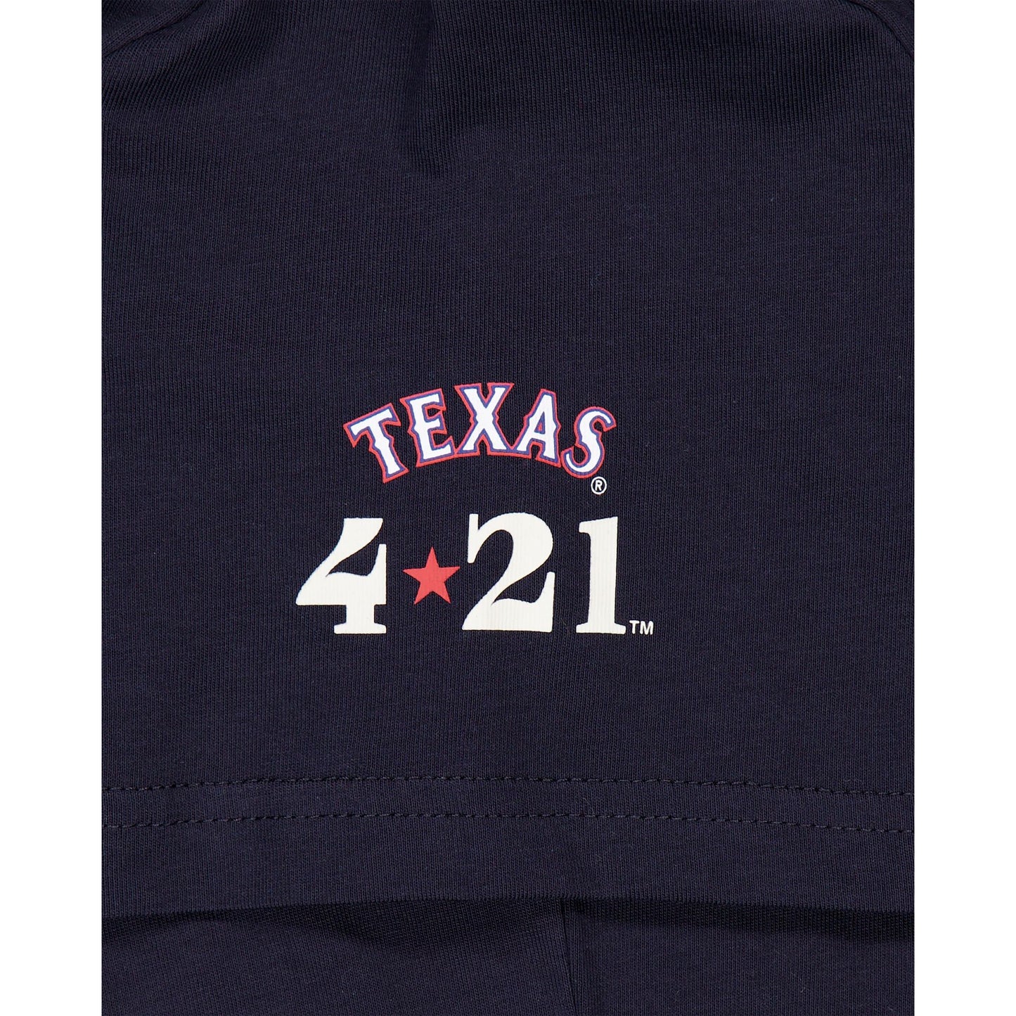 Jersey inspired, city connected. The Texas Rangers City Connect Women's T-Shirt features a screen-printed Rangers logo at the front with an alternate team logo at the left-wear sleeve.