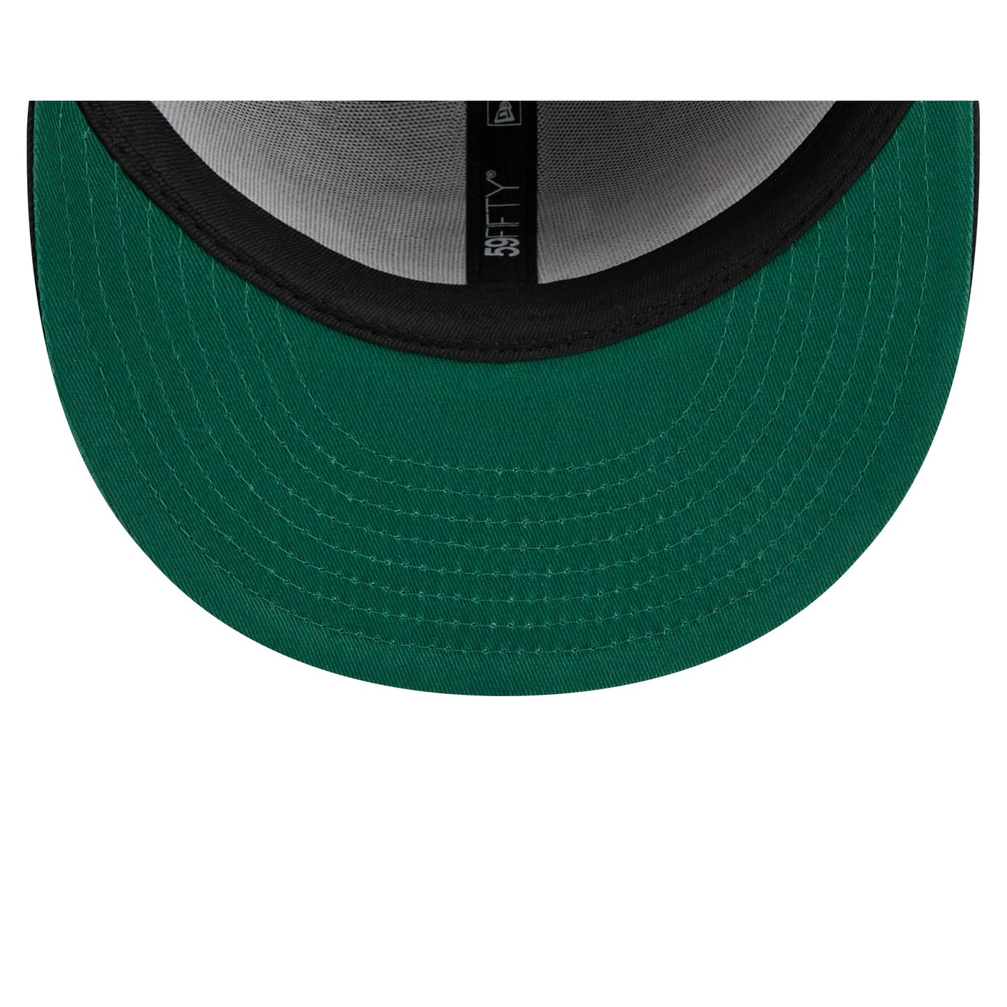 The Texas Rangers Day of the Dead Skull & Flowers 59FIFTY Fitted Cap features an embroidered Rangers logo at the front panels with Day of the Dead floral embroidery throughout the cap. Additional details include the MLB Batterman logo at the rear and a green undervisor.