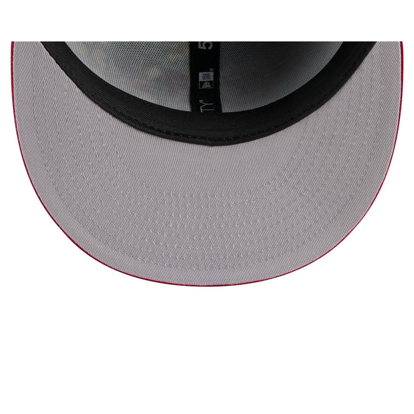The Texas Rangers Diamond Hero Edition 59FIFTY Fitted Cap features an embroidered Rangers onomatopoeia pop logo at the front panels with baseball comic book prints at the front and back panel. Additional details include the MLB Batterman logo at the rear and a gray undervisor.