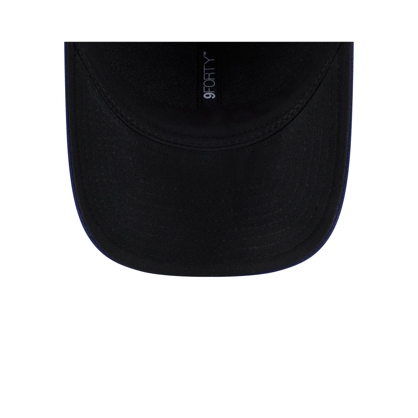 The Texas Rangers Kids 9FORTY M-Crown Snapback features an embroidered Rangers logo at the front panels with a matching MLB Batterman logo above a snapback closure at the rear and a black undervisor.