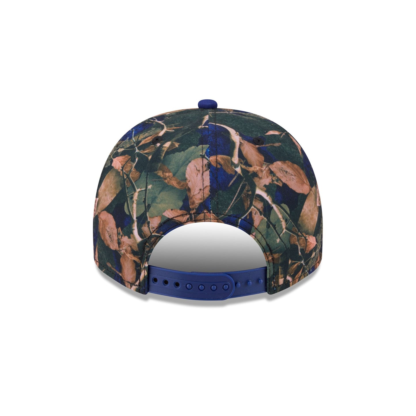 The Texas Rangers Leaves 9FIFTY A-Frame Snapback features an embroidered Rangers logo at the front panels against a forest nature pattern throughout. Additional details include a team patch at the right-wear side, an adjustable snapback closure at the rear, and a gray undervisor.