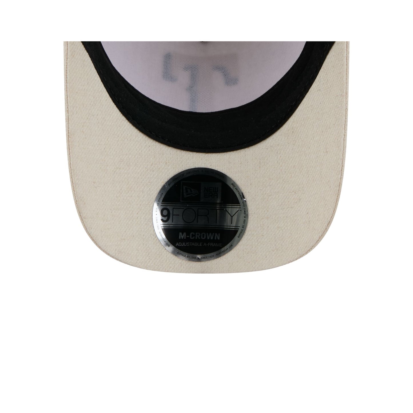 The Texas Rangers Neutral Hemp 9FORTY M-Crown A-Frame Adjustable Cap features an embroidered Rangers logo at the front panels with stripes at the visor and an adjustable hook and loop strap at the rear.