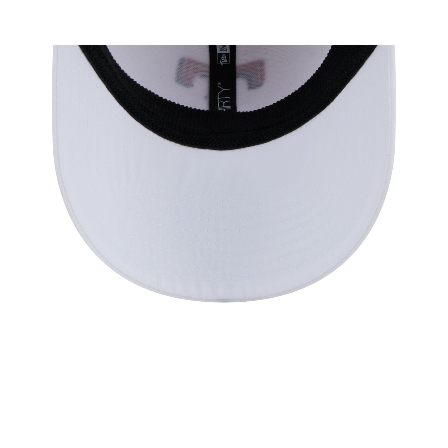 The Texas Rangers Optic White 39THIRTY Stretch Fit Hat features an embroidered Rangers logo at the front panels with a matching team wordmark at the rear and a white undervisor.