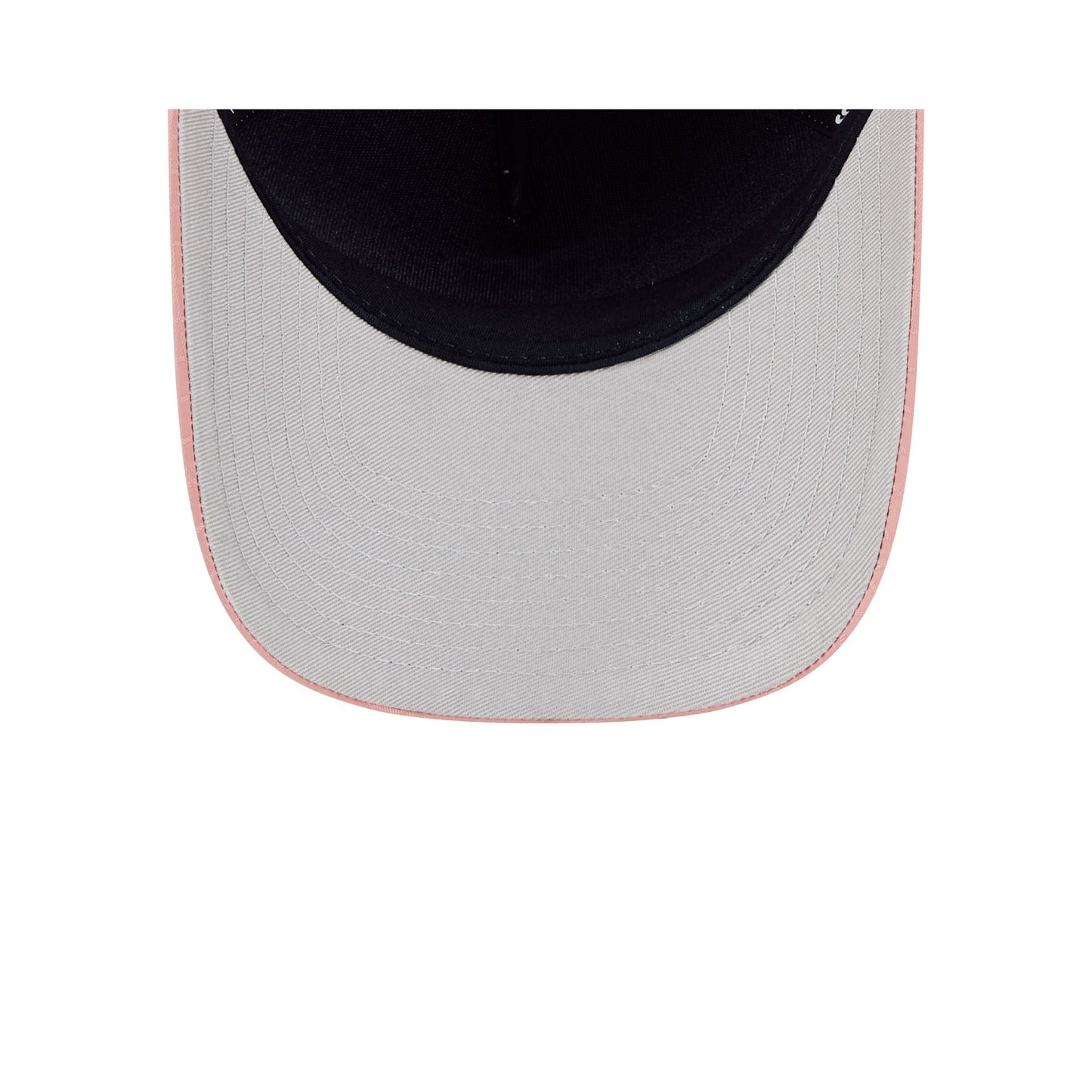 The Texas Rangers Pink Ripstop 9FORTY M-Crown A-Frame Snapback features an embroidered Rangers logo at the front panels against a nylon ripstop fabrication throughout the cap. Additional details include an adjustable snapback closure at the rear and a gray undervisor.