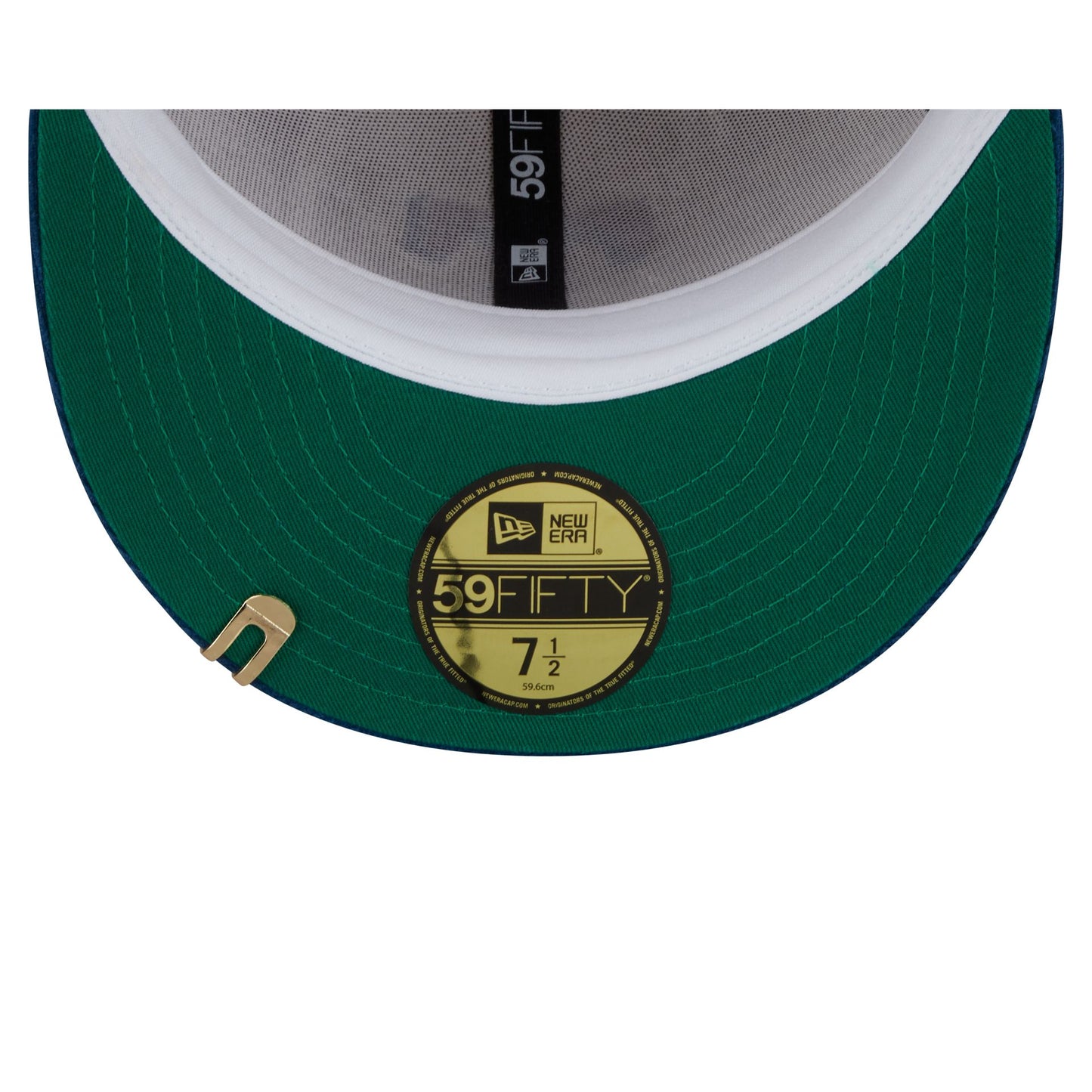 The Texas Rangers Two Tone Cord 59FIFTY Fitted Cap features an embroidered Rangers logo at the front panels against a corduroy fabrication throughout with an MLB Batterman logo at the rear. Additional details include a League patch at the right-wear side, a 2023 World Series visor clip, and a green undervisor.