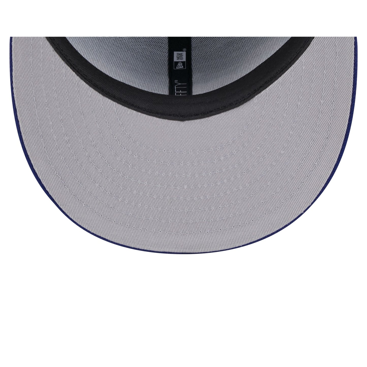The Texas Rangers Wordmark 9FIFTY Snapback features an embroidered Rangers wordmark at the front panels with a matching team logo at the right-wear side, a gray undervisor, and a snapback closure at the rear.