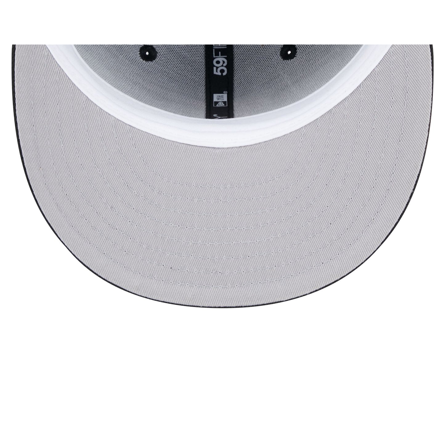 The Texas Tech Red Raiders Black 59FIFTY Fitted Cap features an embroidered Red Raiders logo at the front panels with a matching team wordmark at the rear and a gray undervisor.