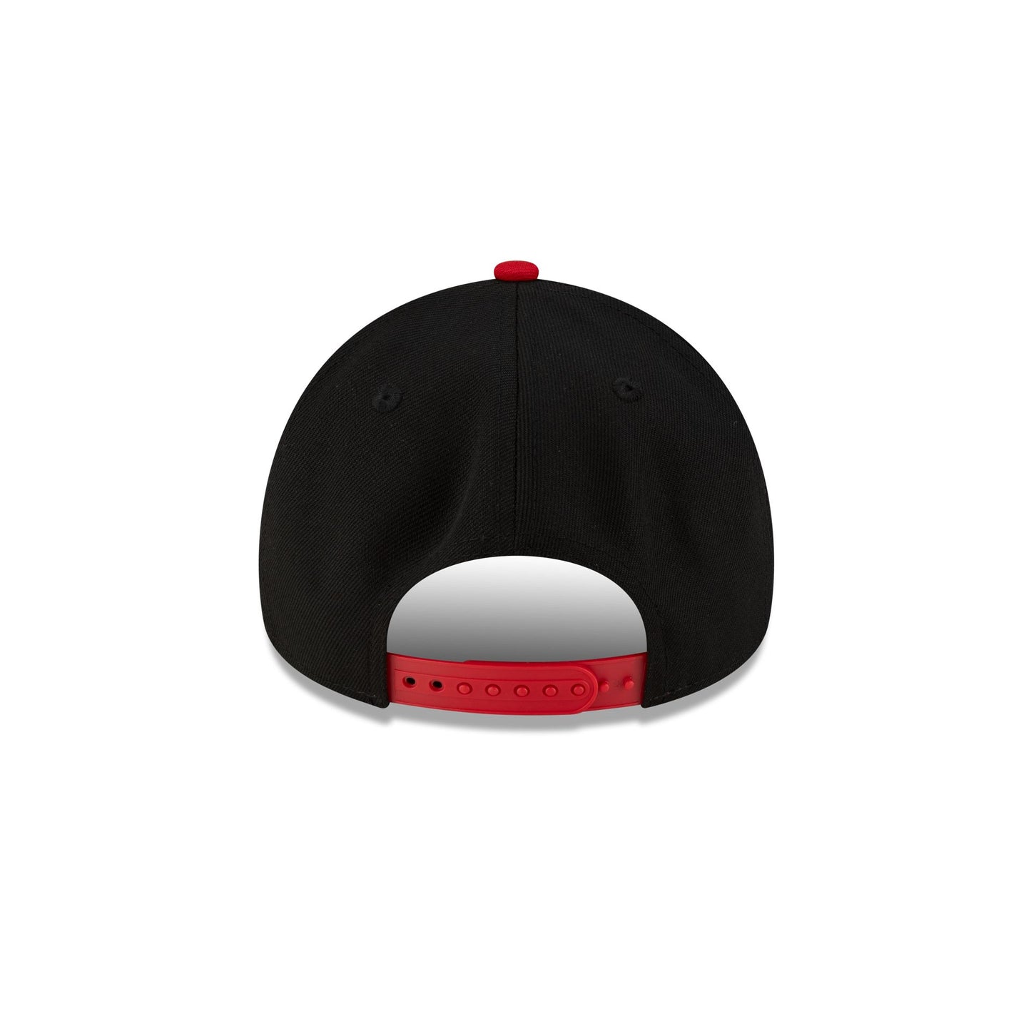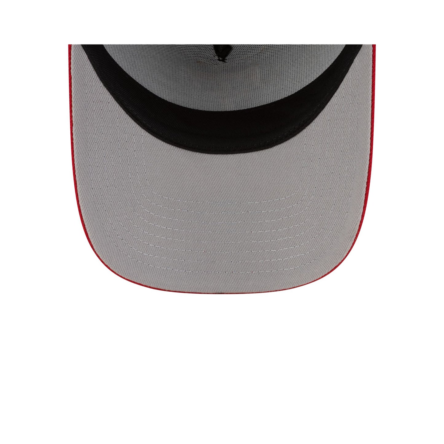 The Texas Tech Red Raiders Hand Signs Sidepatch 9FORTY A-Frame Snapback features an embroidered Red Raiders logo at the front panels with the team's had sign at the right-wear side. Additional details include a snapback closure at the rear and a gray undervisor.