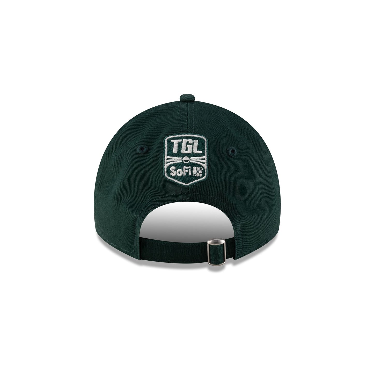 The Bay Golf Club 9TWENTY Adjustable Cap features an embroidered The Bay patch at the front panels with Tomorrow's Golf League logo above an adjustable D-Ring closure at the rear.