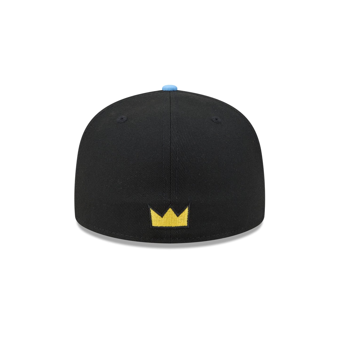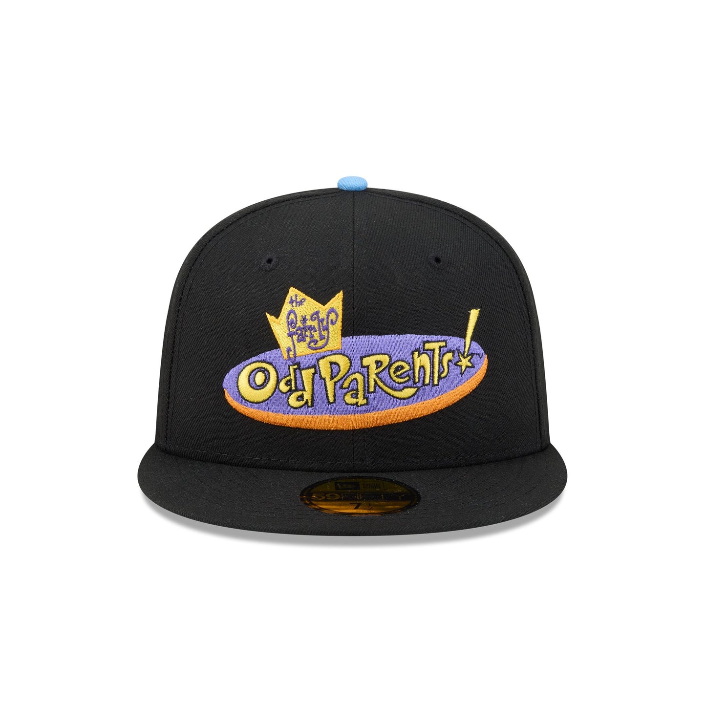 The Fairly OddParents Logo 59FIFTY Fitted Cap features an embroidered The Fairly OddParents logo at the front panels with Jorgen Von Strangle at the right-wear side. Additional details include an embroidered crown at the rear and a patterned undervisor.
