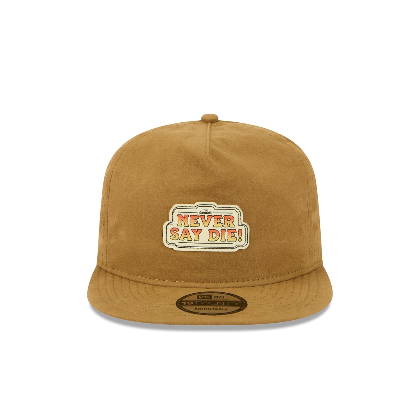 The Goonies 19TWENTY Adjustable Cap features an embroidered The Goonies Never Say Die patch at the front panels with a skull embroidered to the right of an adjustable snapback closure at the rear.
