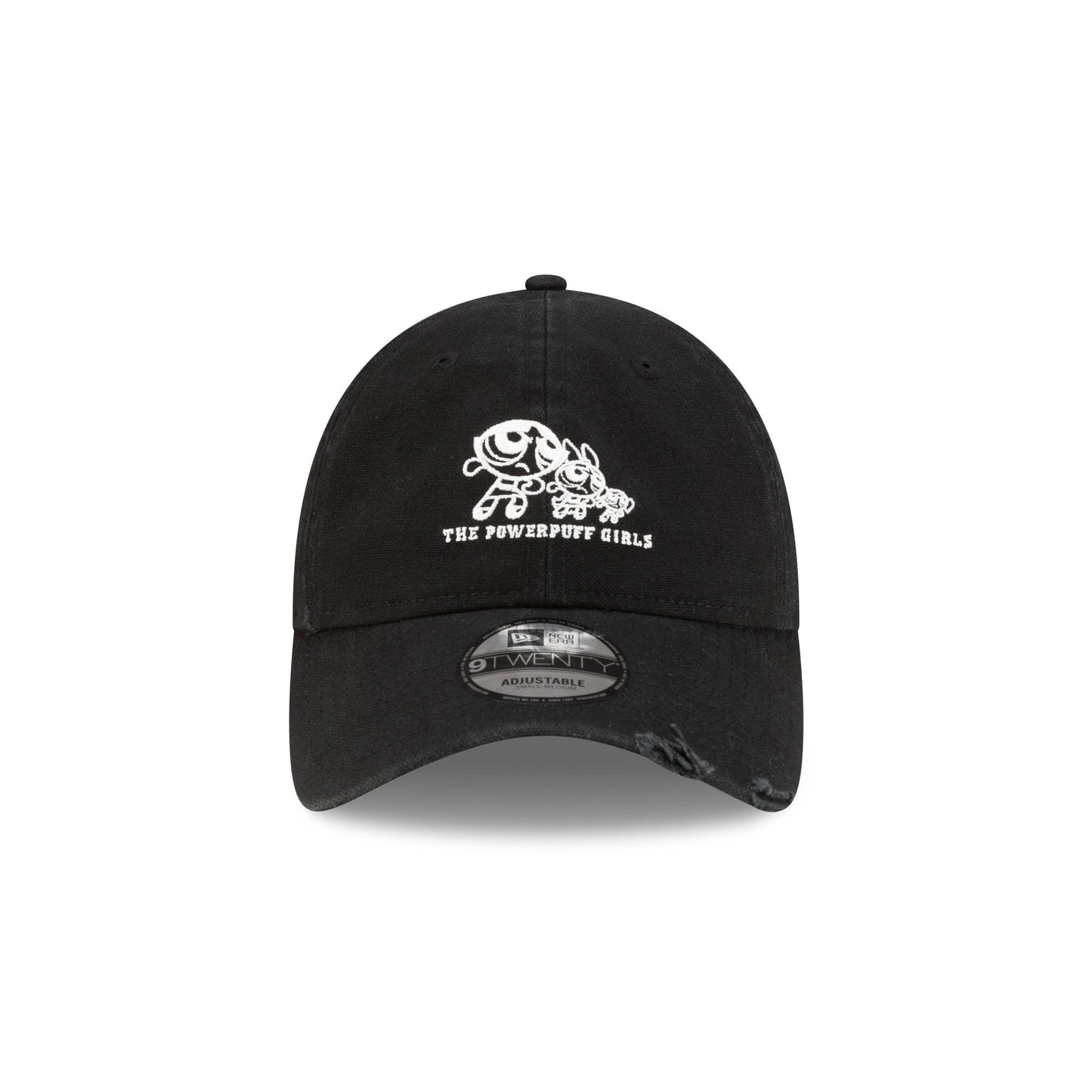 The Powerpuff Girls Worn Black 9TWENTY Adjustable Cap features an embroidered The Powerpuff Girls graphic at the front panels with a distressed fabrication at the visor and an adjustable D-Ring closure at the rear.