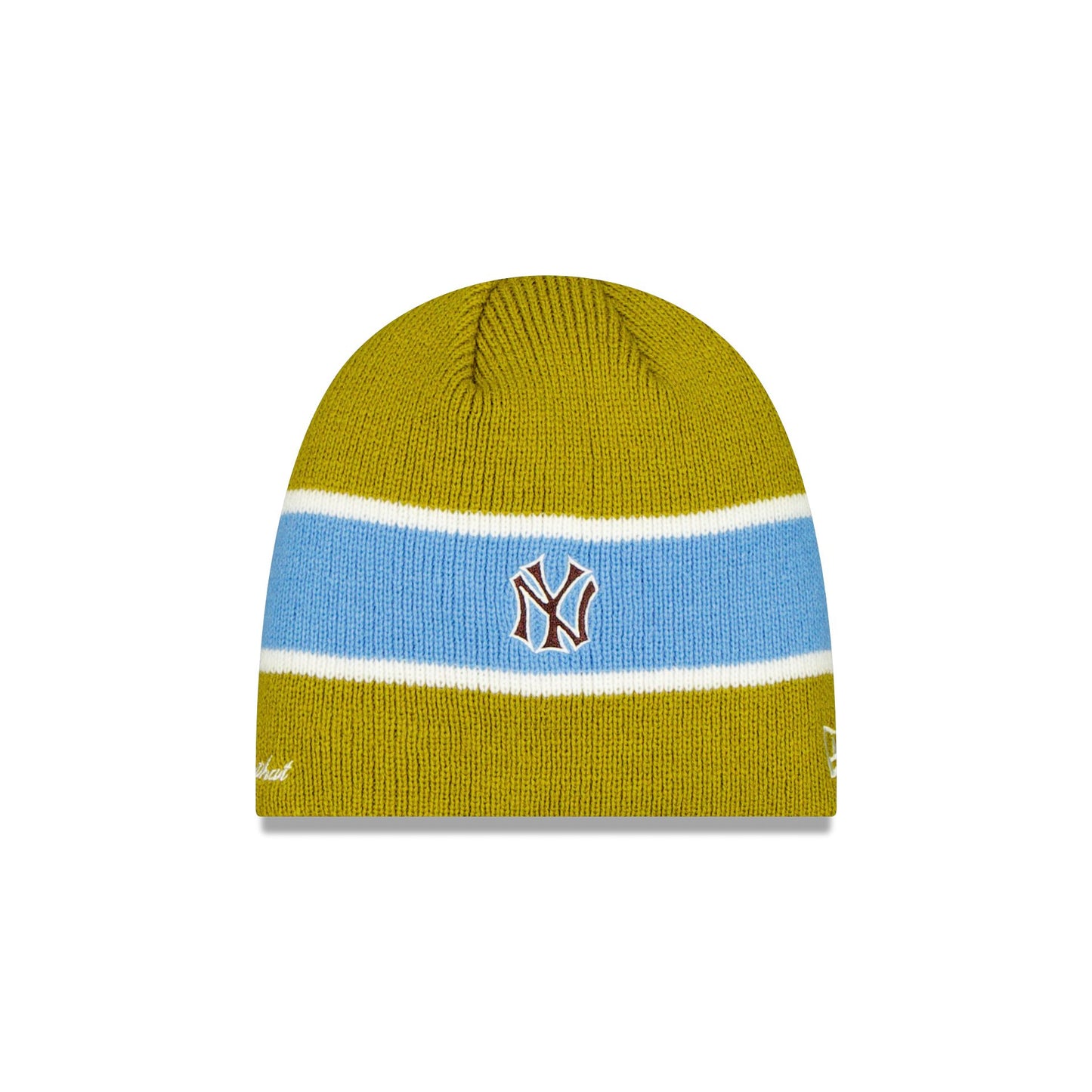 The thisisneverthat® x New York Yankees Skull Knit Olive features an embroidered Yankees logo at the front with a thisisneverthat® script at the right-wear side.