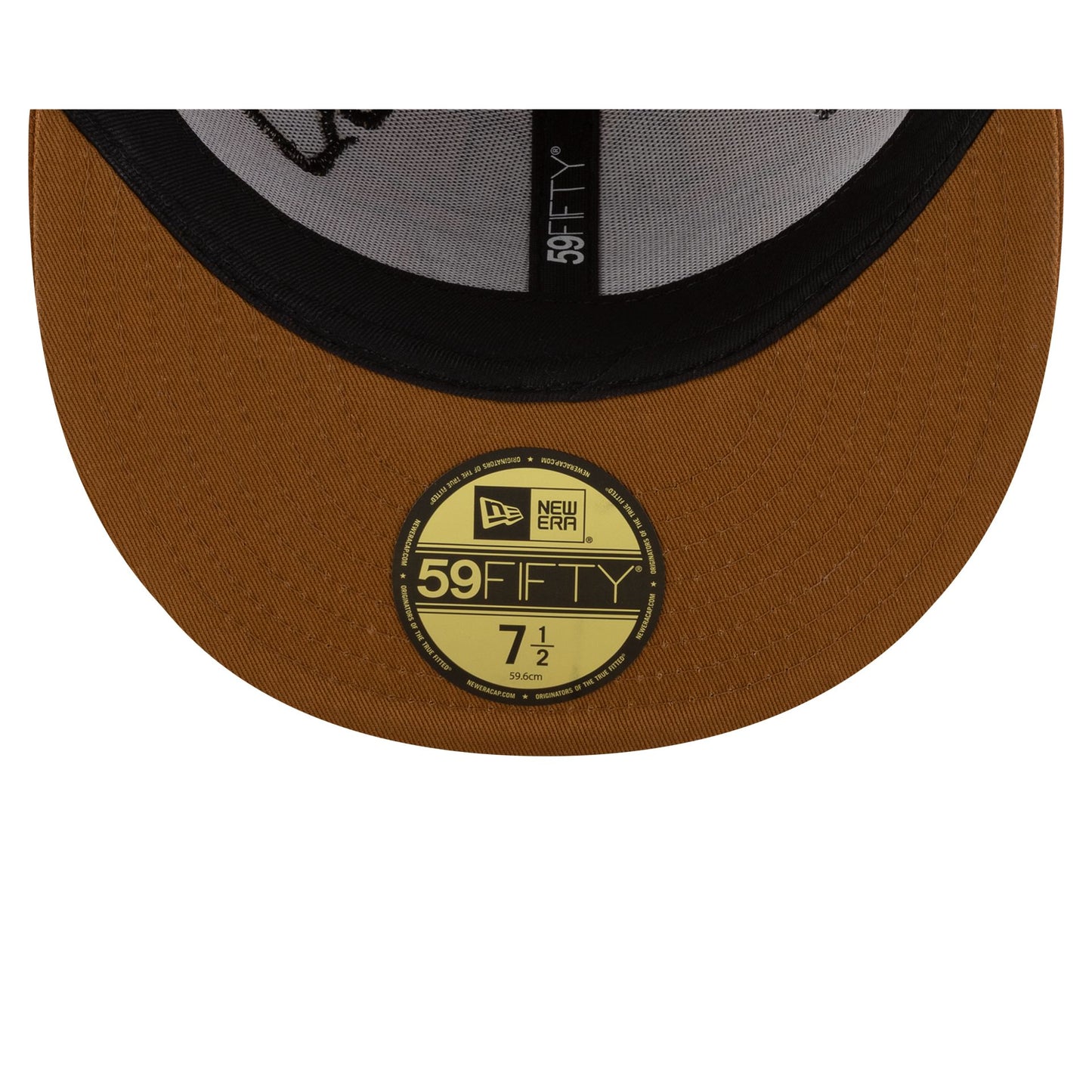 The Tom and Jerry Jerry's Face 59FIFTY Fitted Cap features an embroidered face of Jerry at the front panels with a soft fabrication throughout. Additional details include a wordmark at the rear and a black undervisor.