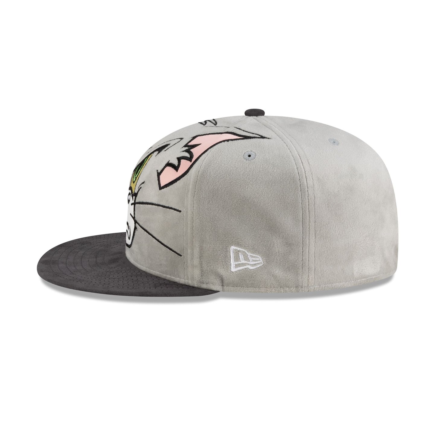 The Tom and Jerry Tom's Face 59FIFTY Fitted Cap features an embroidered face of Tom at the front panels with a soft fabrication throughout. Additional details include a wordmark at the rear and a black undervisor.