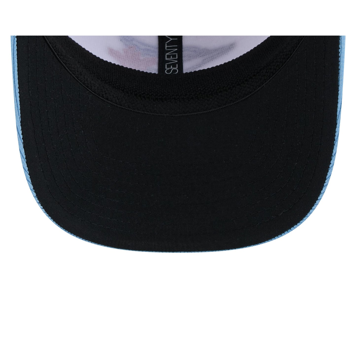 The Toronto Blue Jays 2025 Spring Training 9SEVENTY Trucker Cap features an embroidered Blue Jays logo at the front panels with a snapback closure at the rear. Additional details include a pivot knit fabrication with a 2025 Spring Training patch at the right-wear side and a black undervisor.