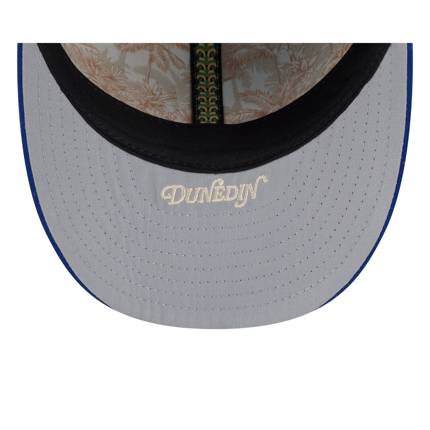 The Toronto Blue Jays 2026 Spring Training 59FIFTY Fitted Cap features an embroidered floral Blue Jays logo at the front panels with a 2026 Spring Training patch at the right-wear side and the MLB Batterman logo at the rear. Additional details include an embroidered spring training location at a gray undervisor and a floral lining. This cap comes with a pre-curved visor.