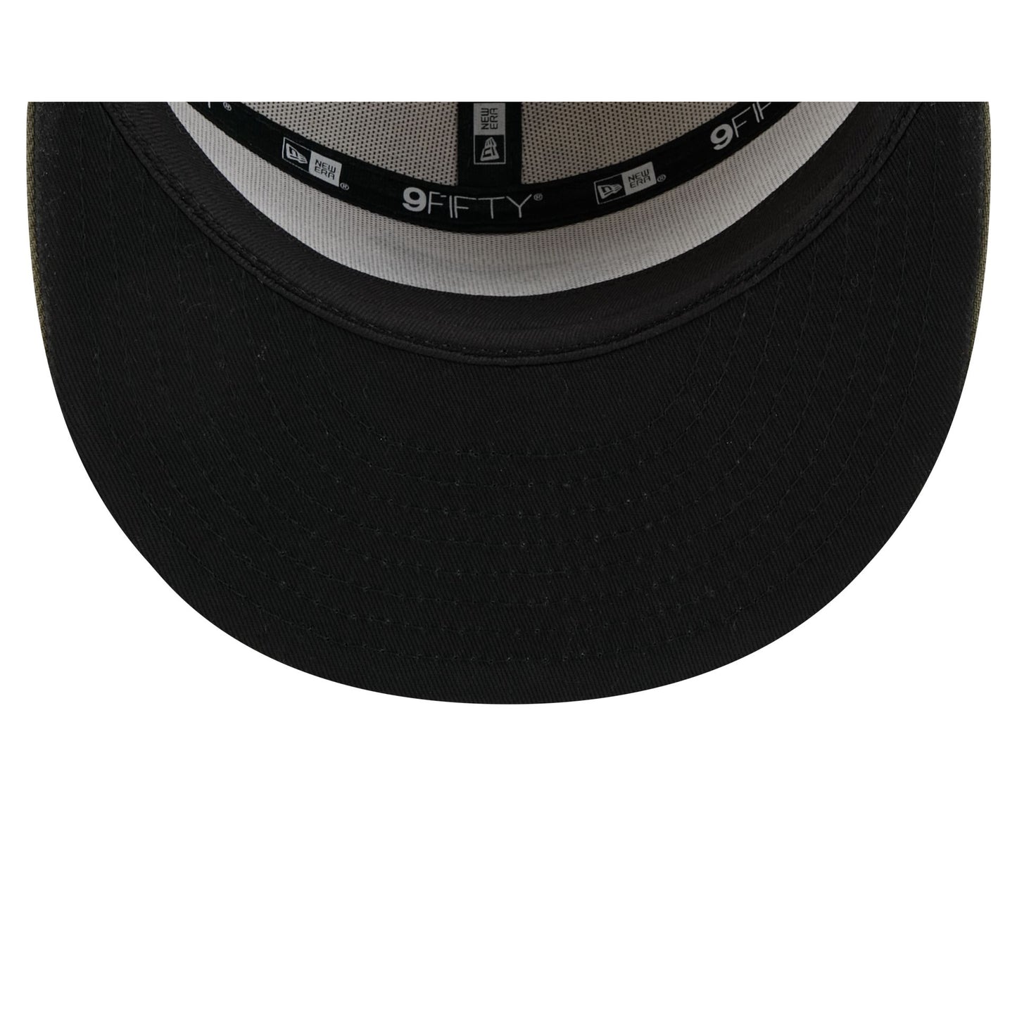 The Toronto Blue Jays Armed Forces Day 2025 9FIFTY Split Panel Snapback features an embroidered Blue Jays logo at the front panels against a split crown construction with the American Flag embroidered at the right-wear side. Additional details include an MLB Batterman logo above a snapback closure at the rear and a black undervisor.