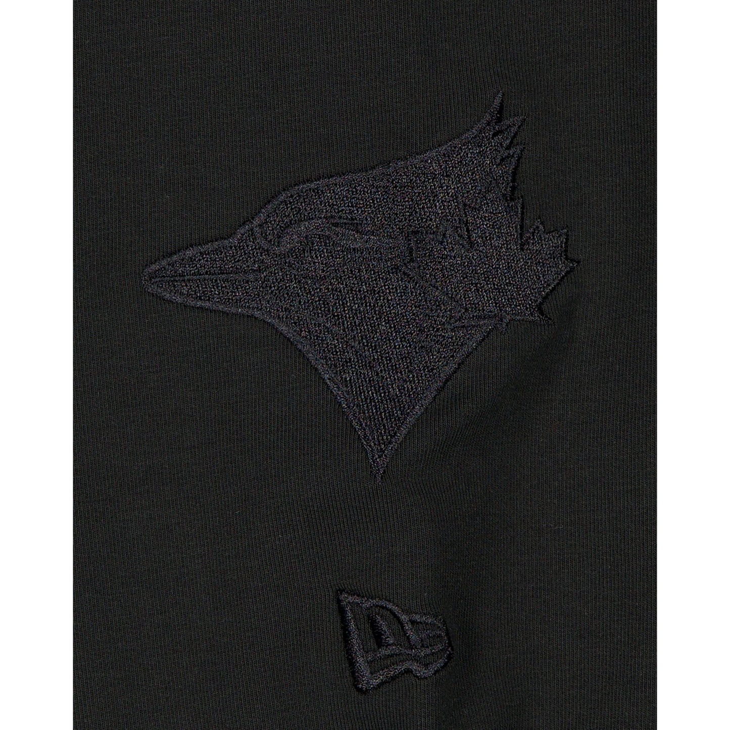 The Toronto Blue Jays Black on Black Logo Select Hoodie features a satin applique with a tonal stitch Blue Jays wordmark at the chest and an embroidered team logo at the left-wear sleeve.