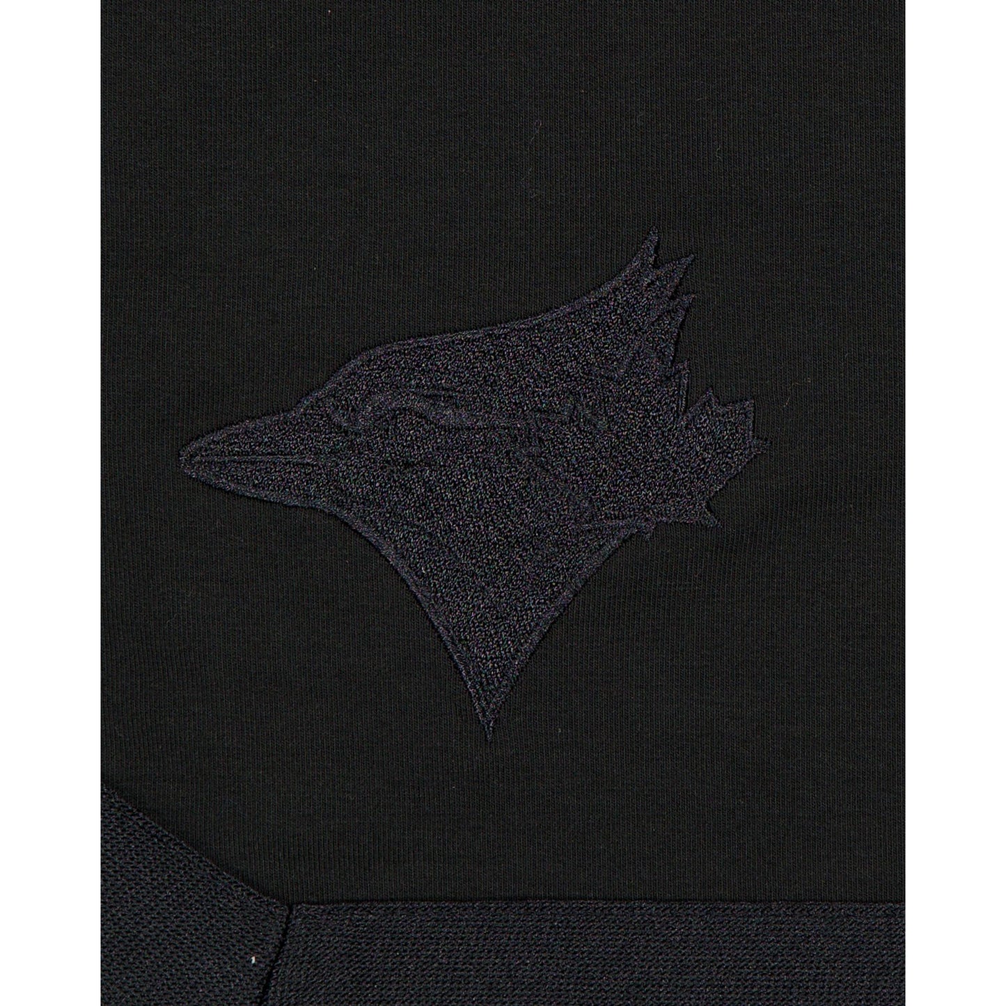 The Toronto Blue Jays Black on Black Logo Select Shorts features an embroidered Blue Jays logo at the right-wear leg and a satin applique with a tonal stitch team wordmark at the rear left leg.