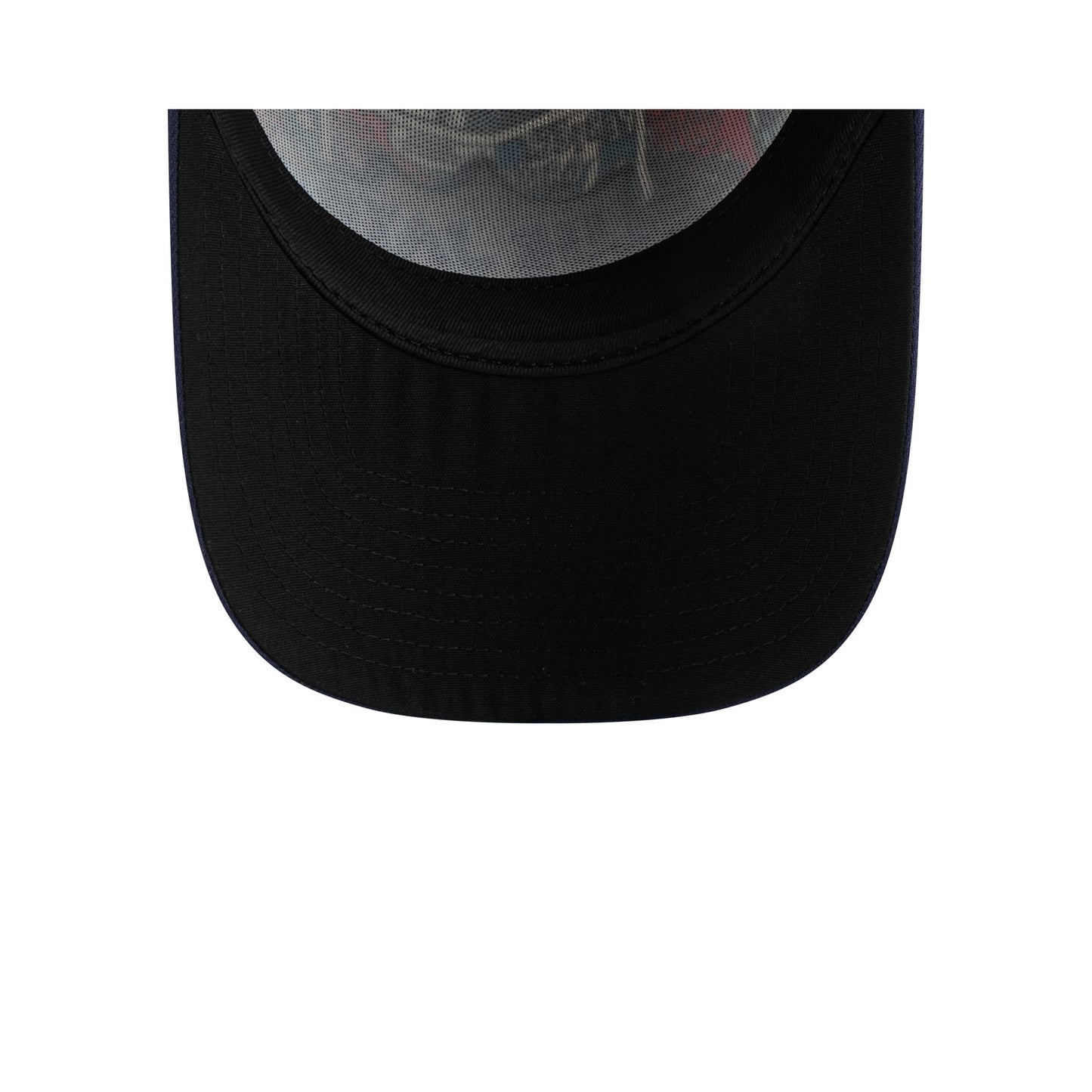 The Toronto Blue Jays Diamond Hero Edition 9FORTY A-Frame Snapback features an embroidered Blue Jays onomatopoeia pop wordmark at the front panels with baseball comic book prints at the front and back panel. Additional details include a ZOOM! wordmark at the left-wear side, the MLB Batterman logo above a snapback closure at the rear, and a black undervisor.