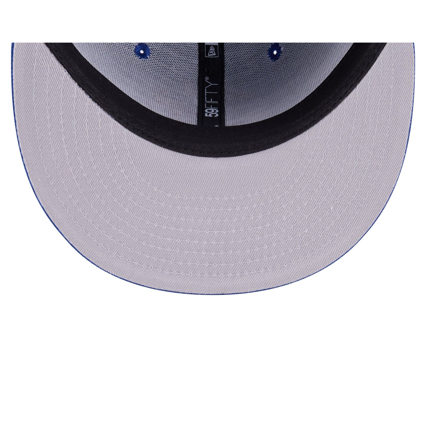 The Toronto Blue Jays Glow-In-The-Dark 59FIFTY Fitted Cap features an embroidered Blue Jays glow-in-the-dark logo at the front panels. Additional details include an MLB Batterman logo at the rear and a gray undervisor.