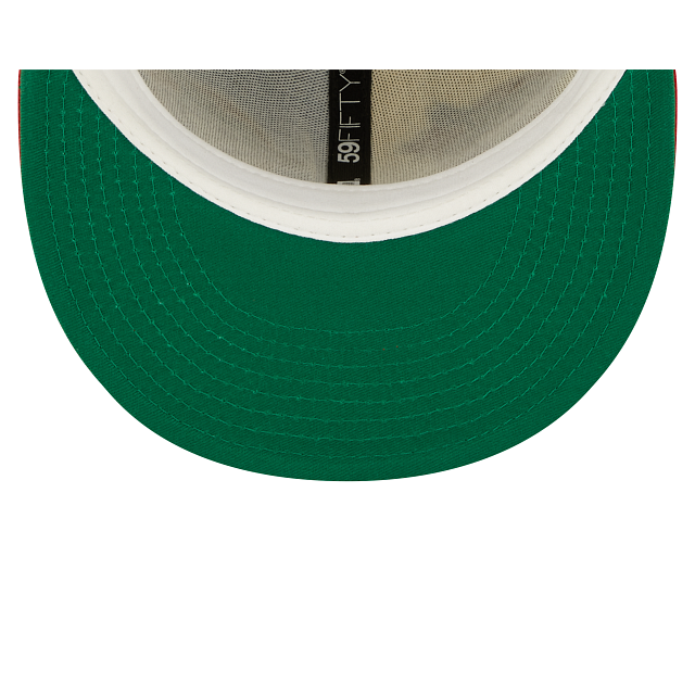 The Toronto Blue Jays Logo Pinwheel 59FIFTY Fitted Cap features six different embroidered Blue Jays logos throughout the crown, and an MLB Batterman logo at the rear. Additional details include a green undervisor.