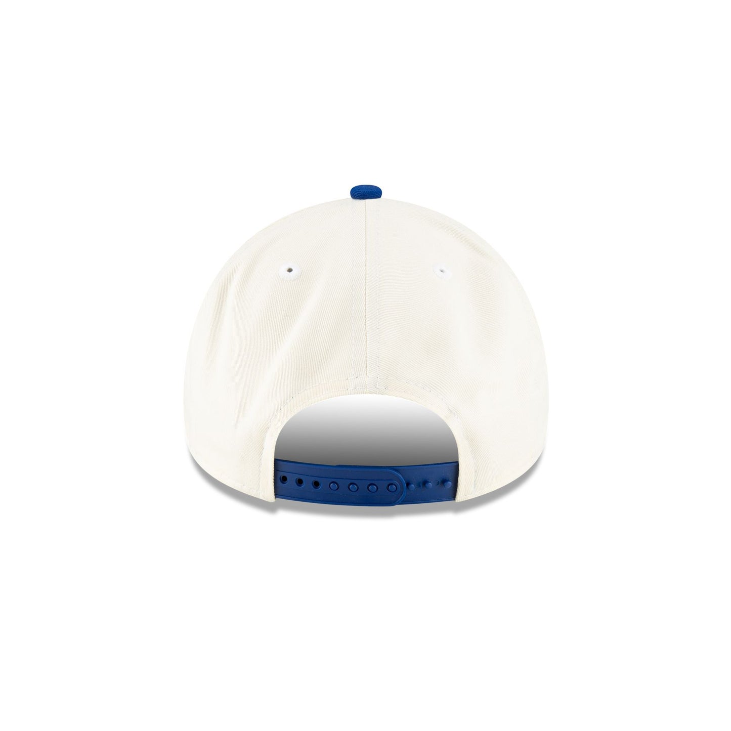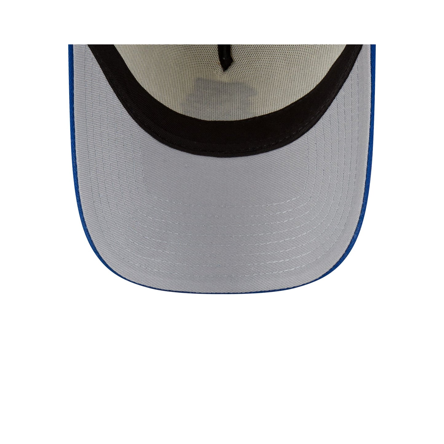 The Toronto Blue Jays Mini Mascot 9FORTY A-Frame Snapback features an embroidered Blue Jays mascot at the front panels with a 25th Anniversary patch at the right-wear side and a snapback closure at the rear.