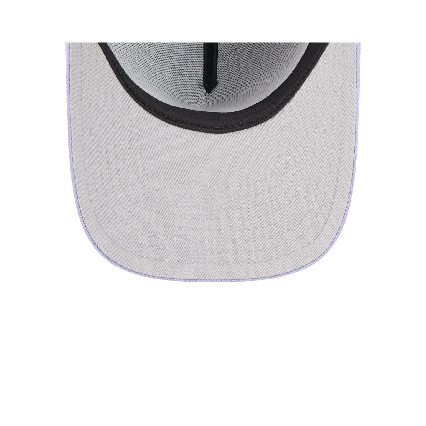 The Toronto Blue Jays Navy Lavender 9FIFTY A-Frame Snapback features an embroidered Blue Jays Cooperstown logo at the front panels with a 1991 All-Star Game patch at the right-wear side. Additional details include a snapback closure at the rear and a gray undervisor.