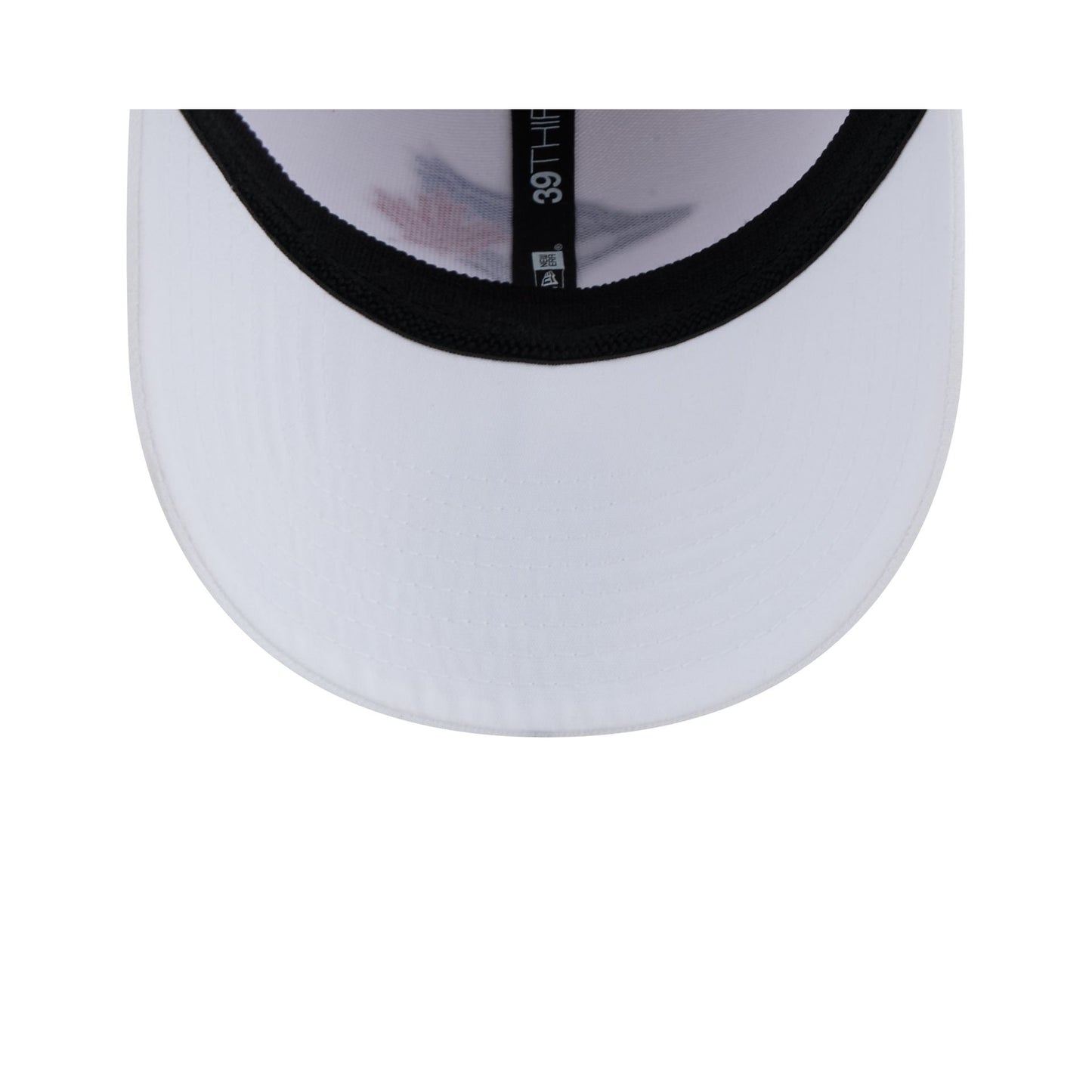 The Toronto Blue Jays Optic White 39THIRTY Stretch Fit Hat features an embroidered Blue Jays logo at the front panels with a matching team wordmark at the rear and a white undervisor.