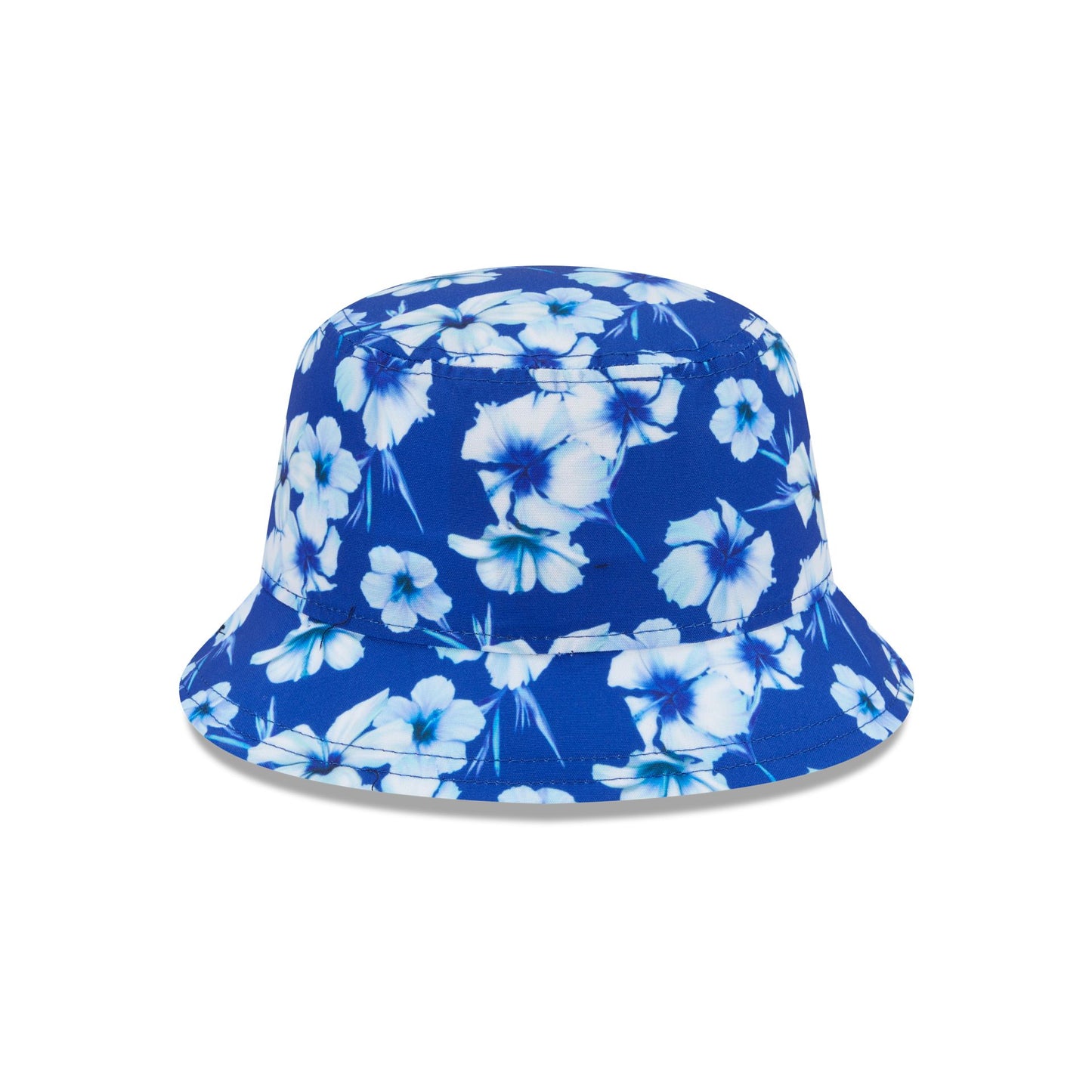 The Toronto Blue Jays Pattern Bucket Hat features an allover floral pattern with an embroidered Blue Jays logo at the front panels.