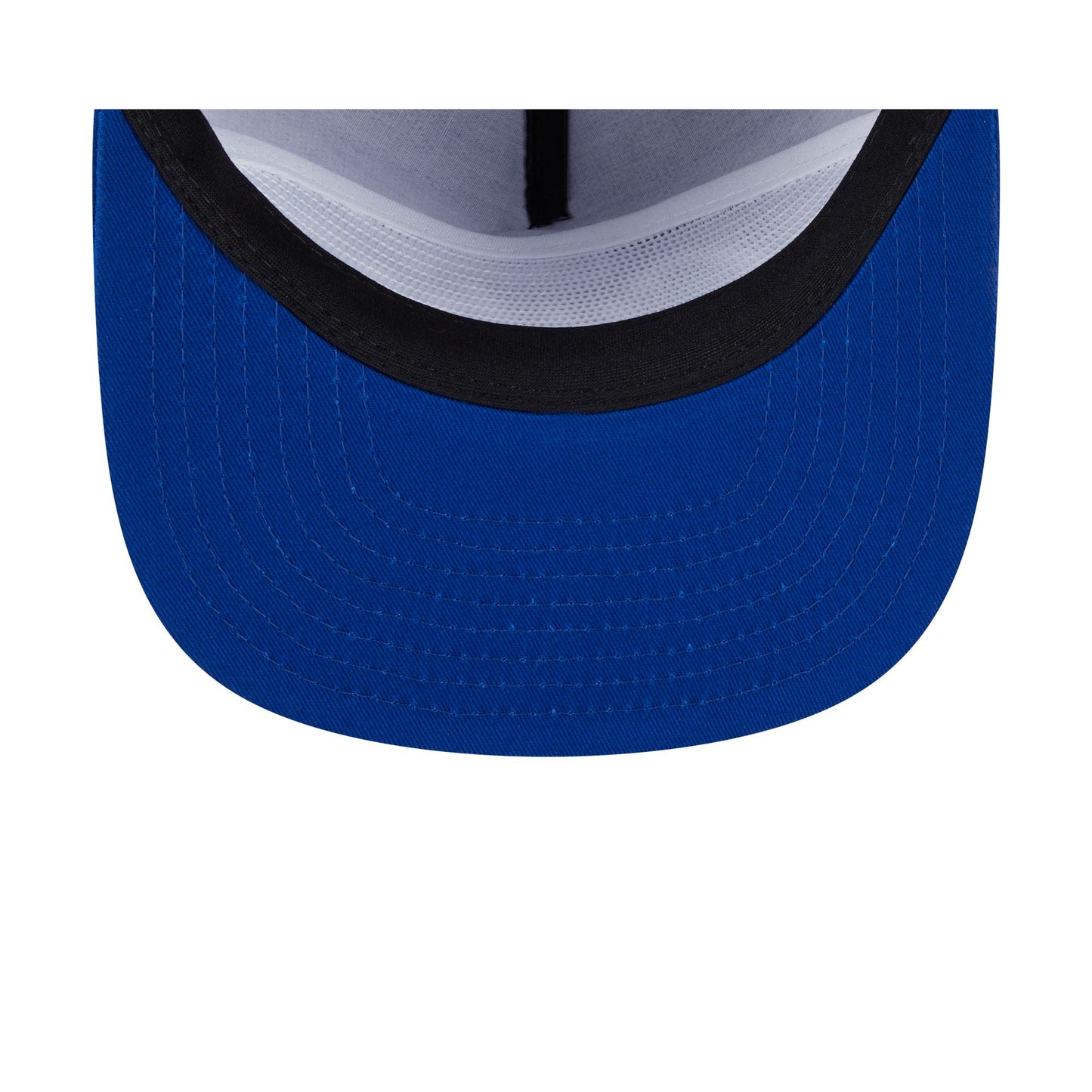 The Toronto Blue Jays Team Text Golfer features an embroidered Blue Jays script at the front panels with a team logo at the right-wear side and a snapback closure at the rear.