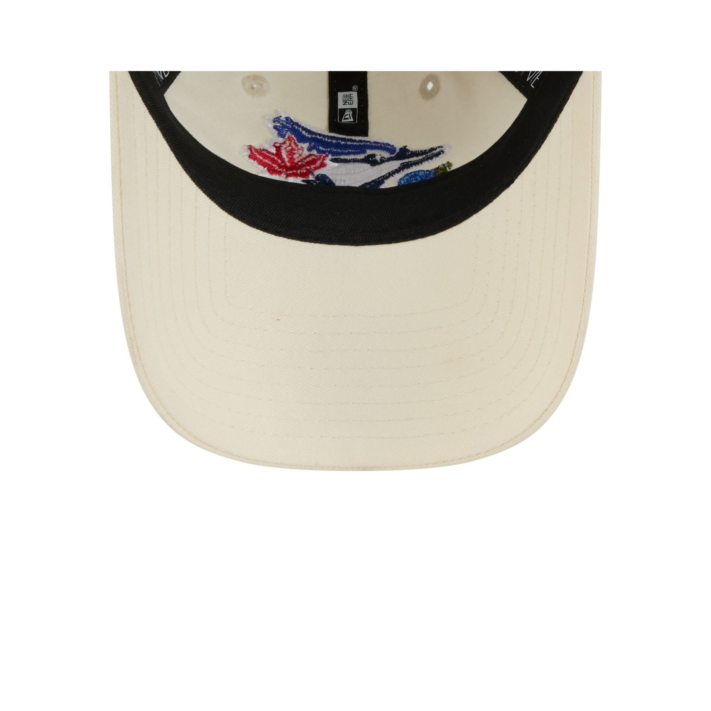 The Toronto Blue Jays Women's Floral Stitch 9TWENTY Adjustable Cap features an embroidered Blue Jays logo with matching flowers at the front panels and an adjustable D-Ring closure at the rear.