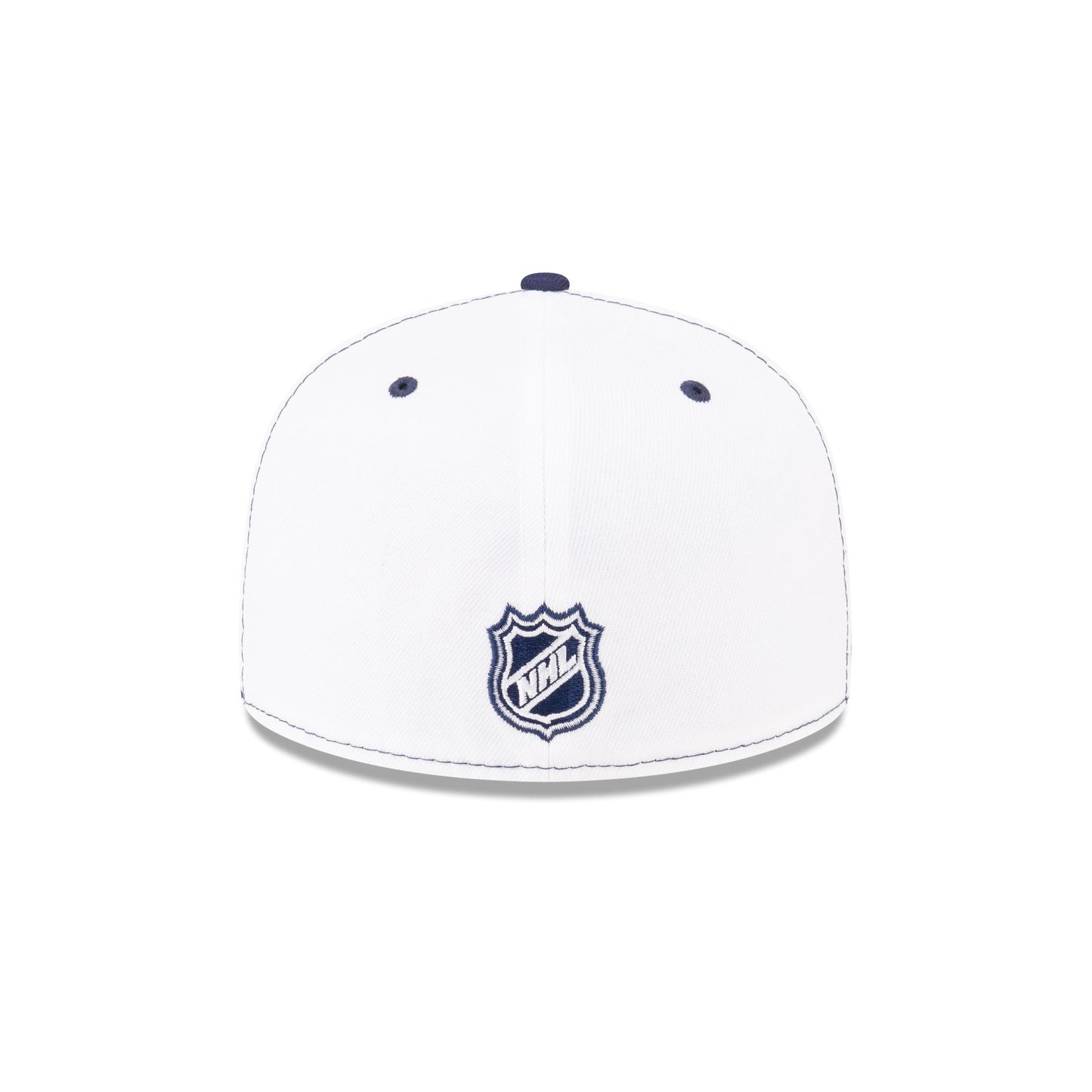 The Toronto Maple Leafs Mascot 59FIFTY Fitted Cap features an embroidered Maple Leafs mascot at the front panels with team color paneled crown and a gray undervisor. Additional details include a team logo at the right-wear side with a matching NHL Shield at the rear.