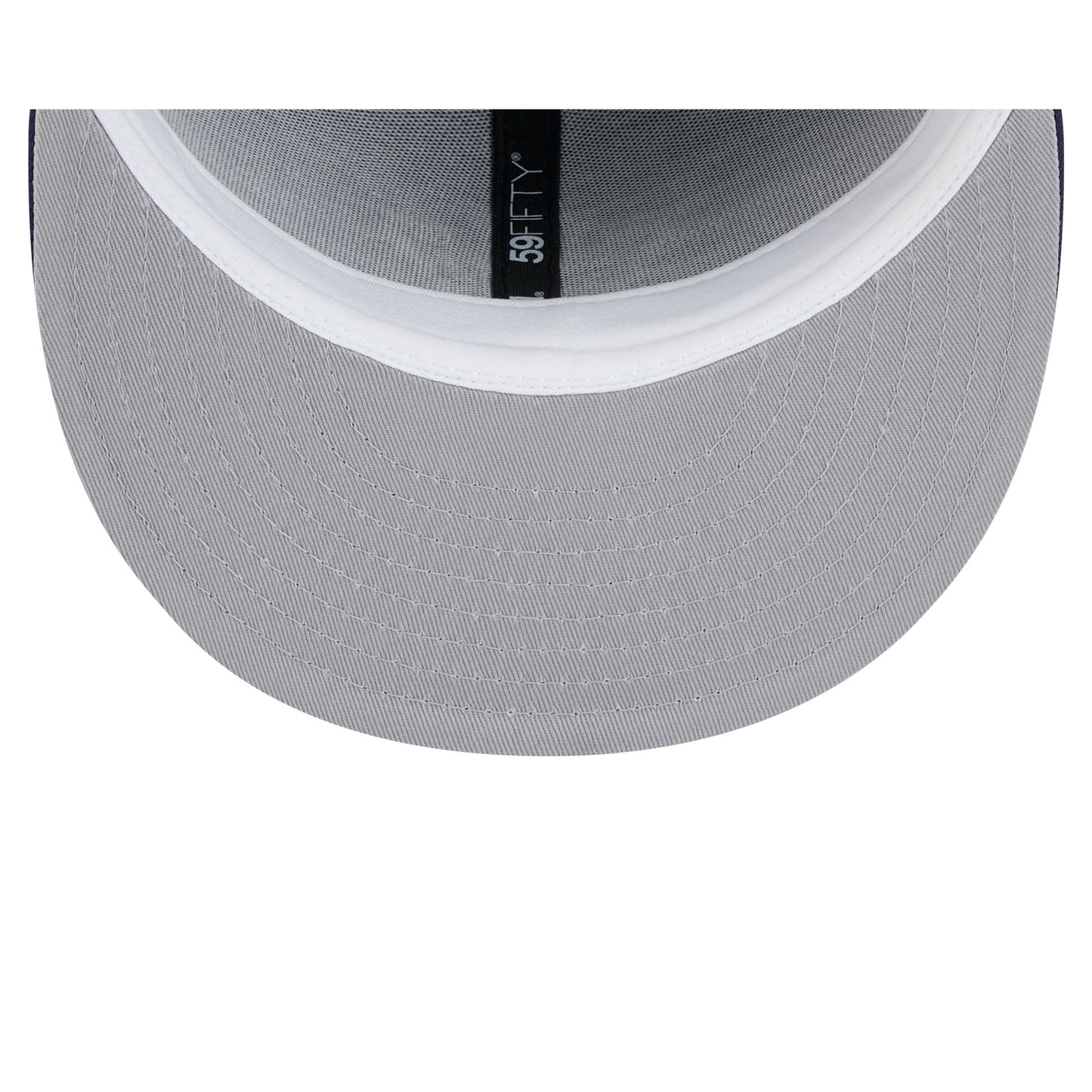 The Toronto Maple Leafs Rear Wordmark 59FIFTY Fitted Cap features an embroidered Maple Leafs logo at the front panels with a wordmark at the rear and a gray undervisor.