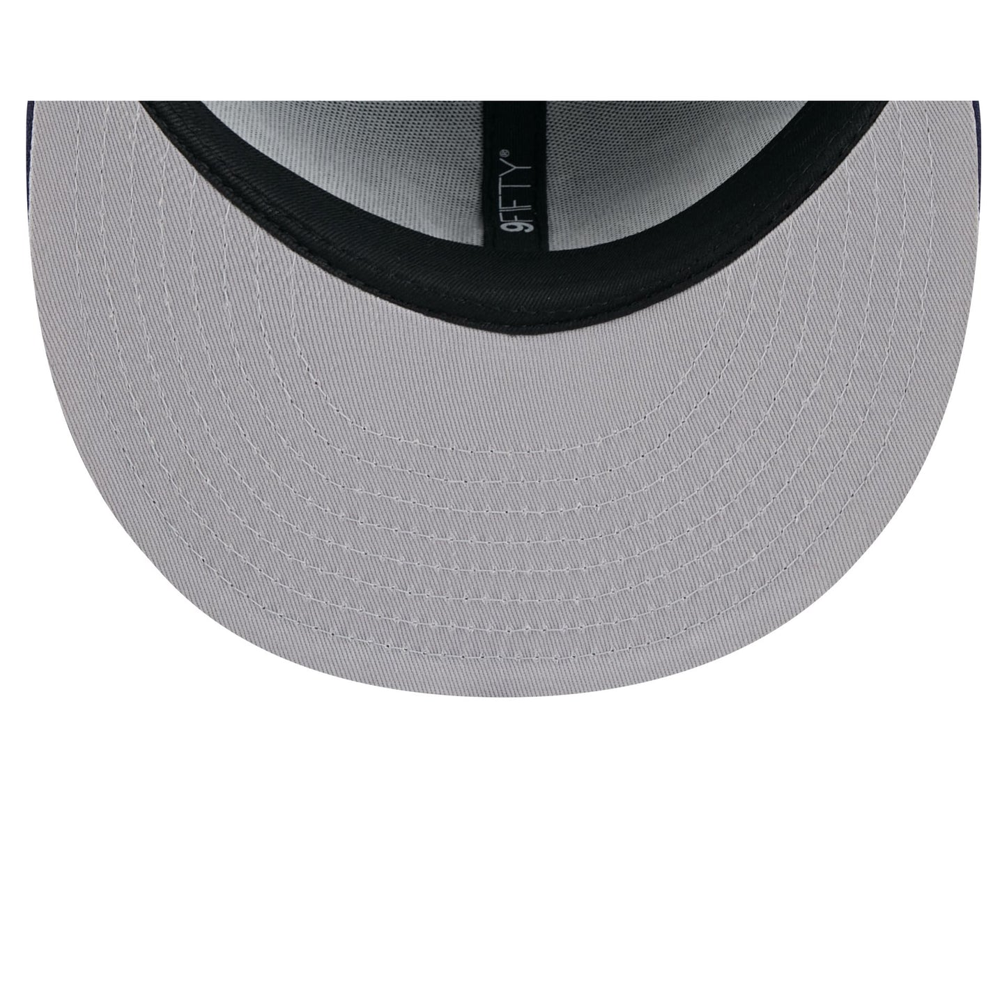 The Toronto Maple Leafs Script 9FIFTY Snapback features an embroidered Maple Leafs wordmark at the front panels with a team logo at the right-wear side. Additional details include a snapback closure at the rear and a gray undervisor.