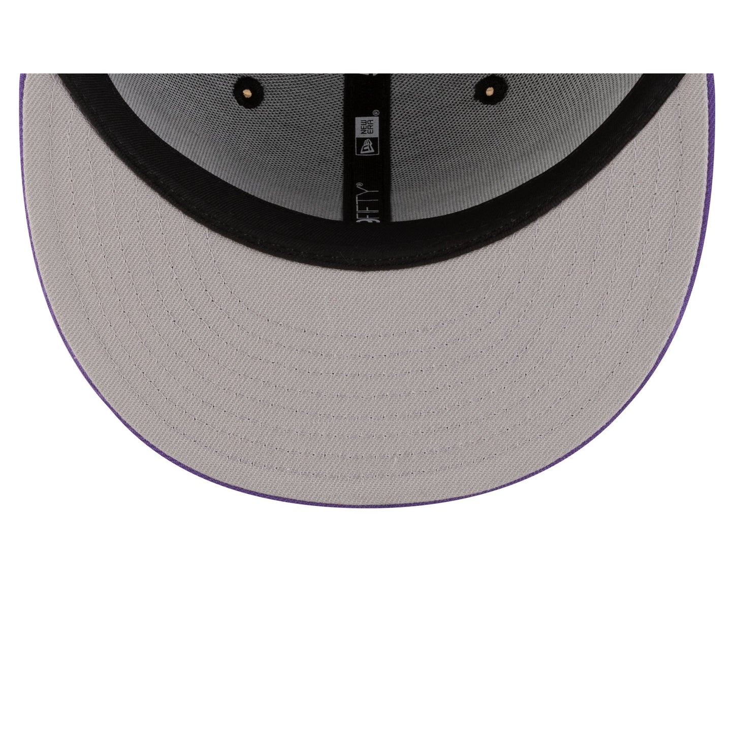 The Toronto Raptors 1995-2008 Hardwood Classics Sign Stack 59FIFTY Fitted Cap features an embroidered Raptors 1995-2008 Hardwood Classics logo at the right-wear side with a matching digital text and NBA Logoman at the front panels. Additional details include the NBA Logoman at the rear and a gray undervisor.