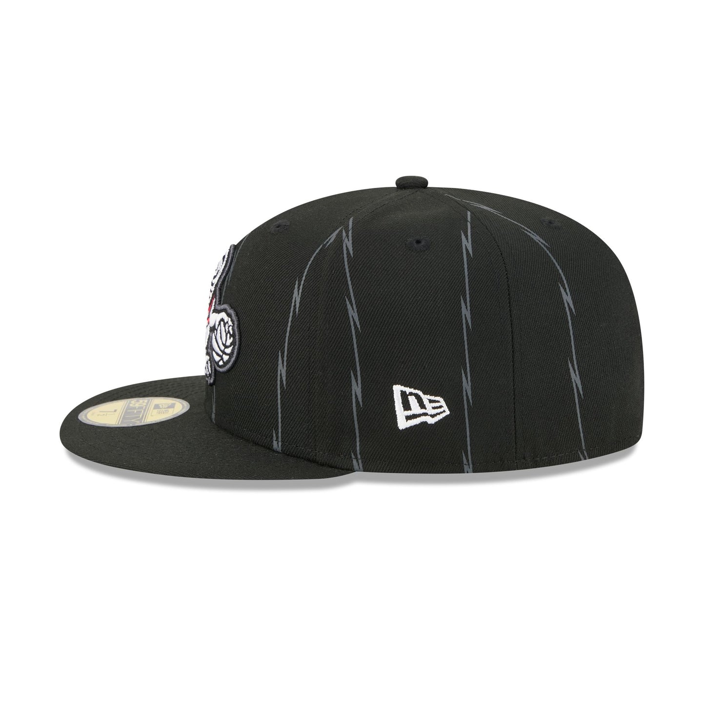The Toronto Raptors 2025 City Edition 59FIFTY Fitted Cap features an embroidered Raptors City Edition logo at the front panels with a logo at the right-wear side. Additional details include the NBA Logoman at the rear and a gray undervisor.